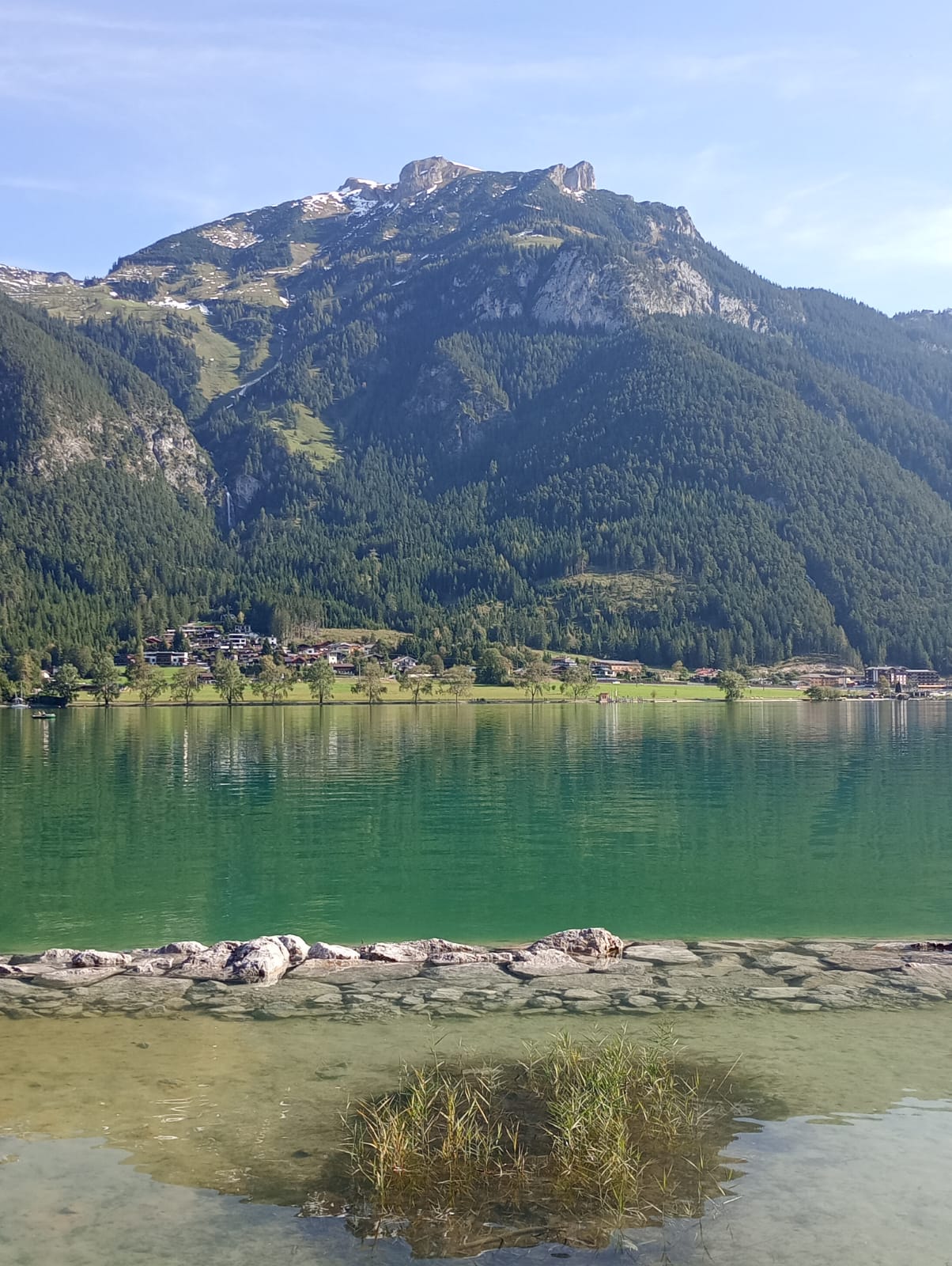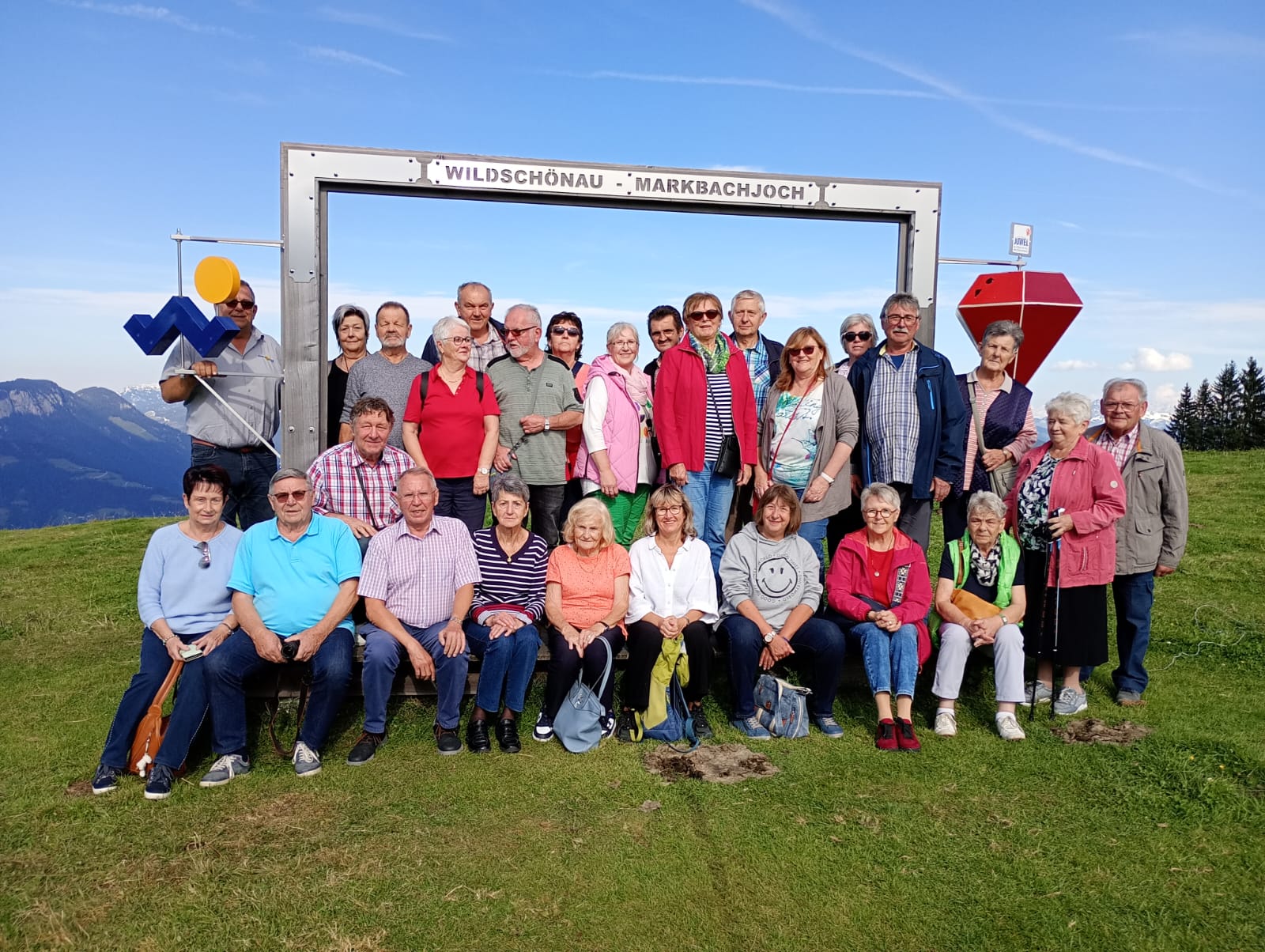 Schon mit Sonnenschein fuhr eine fröhliche Gruppe mit einem Bus der Firma Pomper und Fahrer Angelo in Richtung Österreich. Zu unserem „Glück“ wurde ein Stau am Inntaldreieck gemeldet und so fuhr Angelo über die Landstraße vorbei am Tegernsee und Alpachsee. So hatten wir bereits bei der Anreise einen Blick auf die traumhafte Landschaft.
