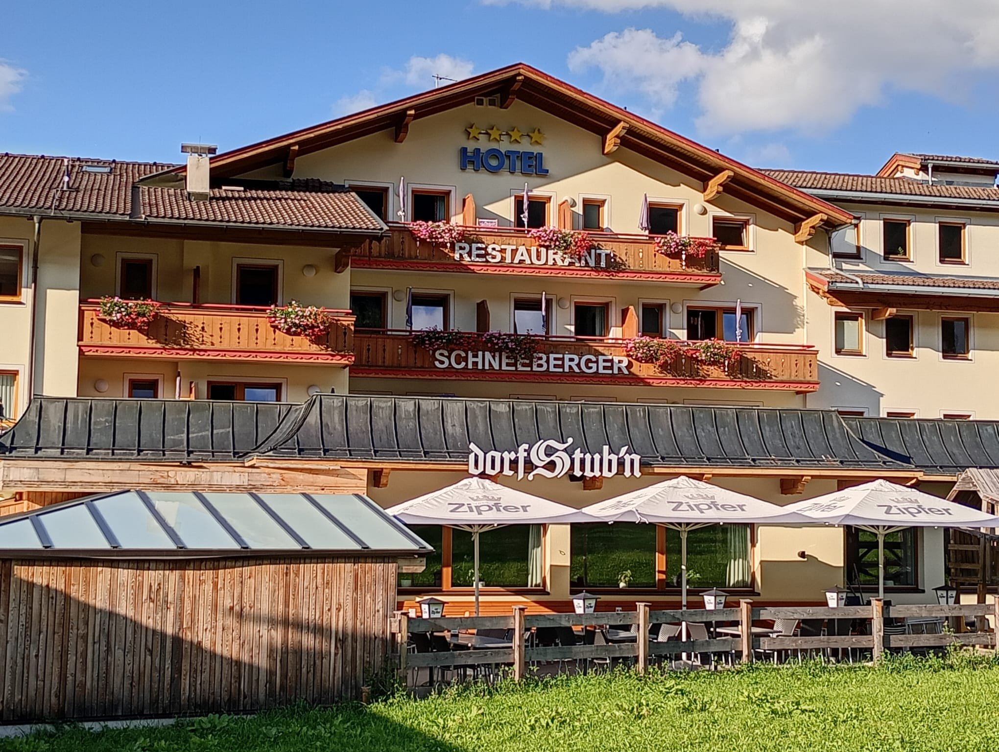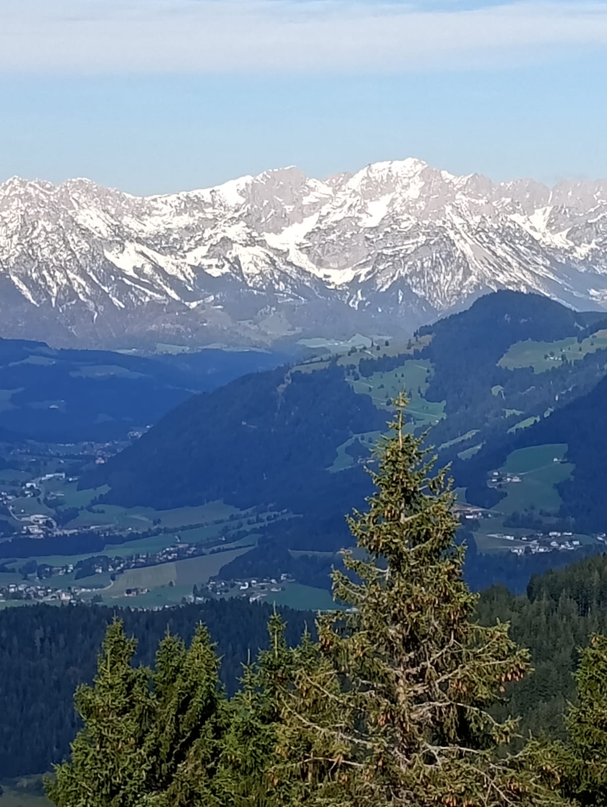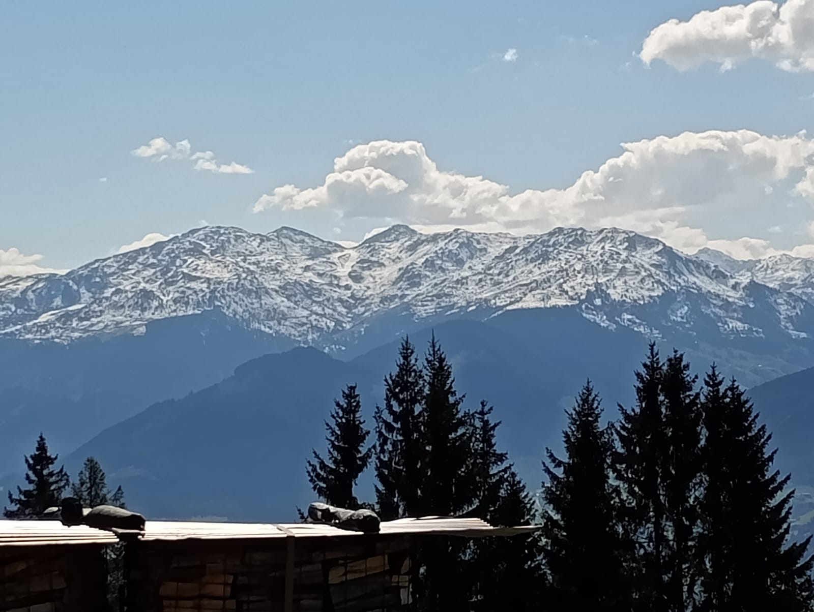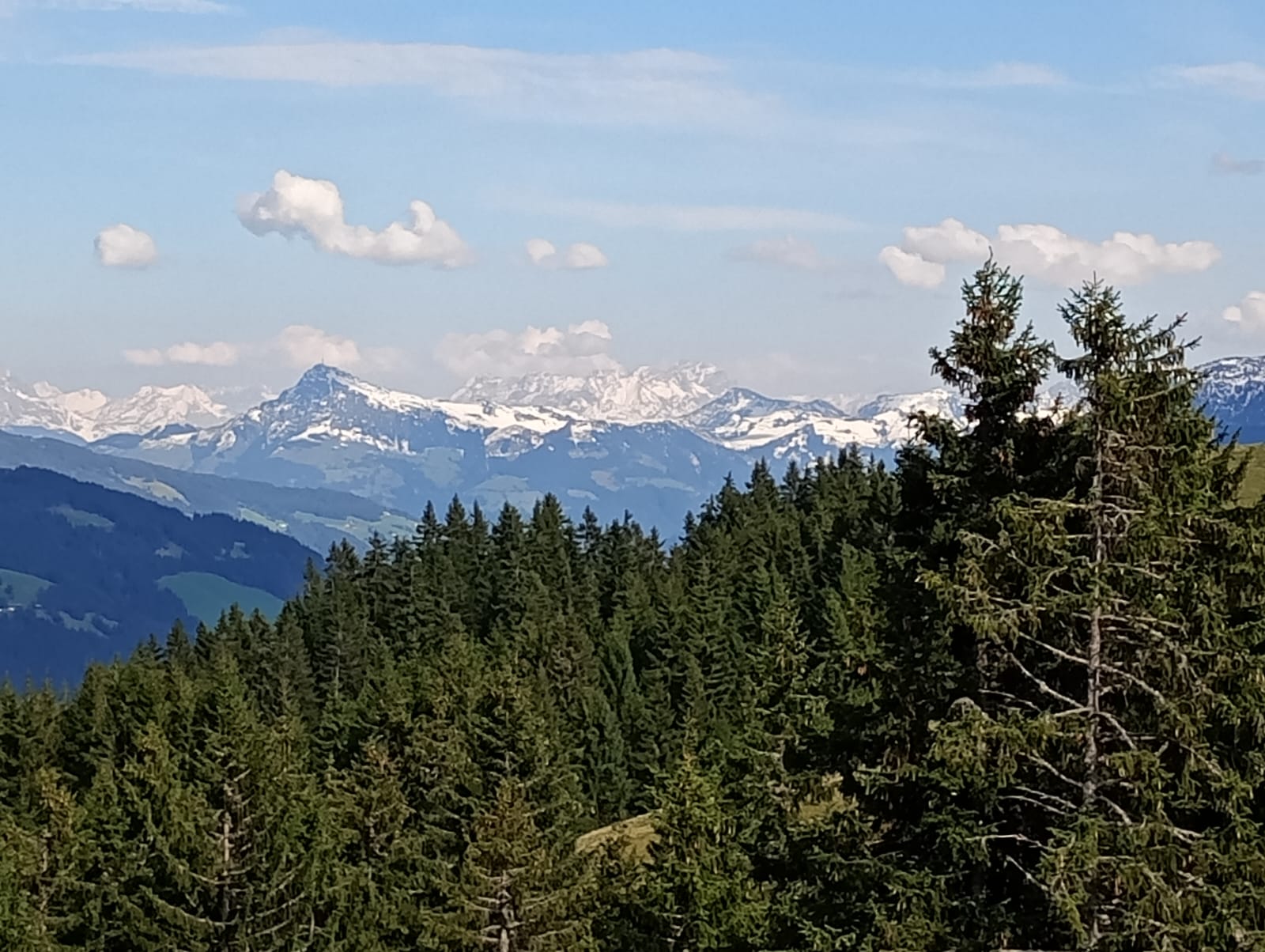 Nach dem Zimmerbezug in unserem Hotel Schönberger in Wildschönau nutzten gleich einige Gäste die Kurkarte und fuhren mit der Gondel der Markjochbahn auf den Berg. Der Lohn war eine atemberaubende Sicht auf die umliegenden Berge, ganz im Hintergrund konnte man sogar eine kleine Spitze vom Großglockner erspähen.