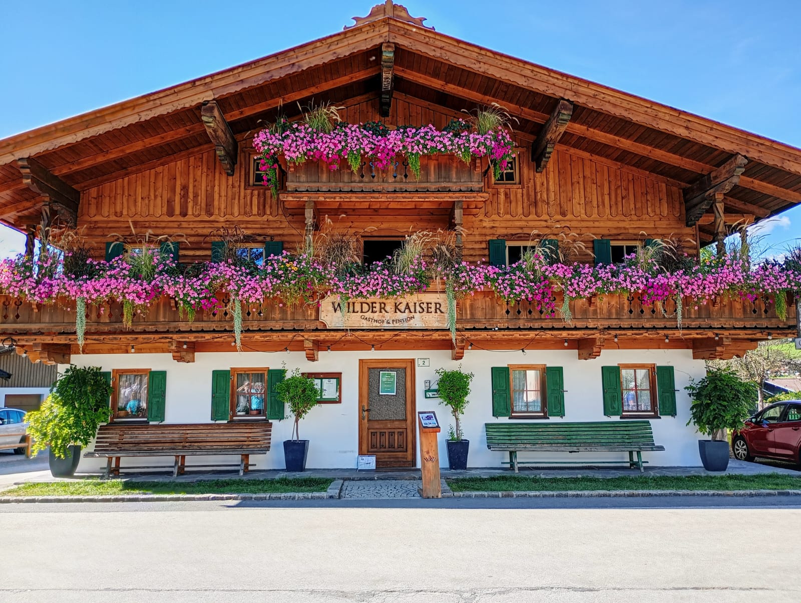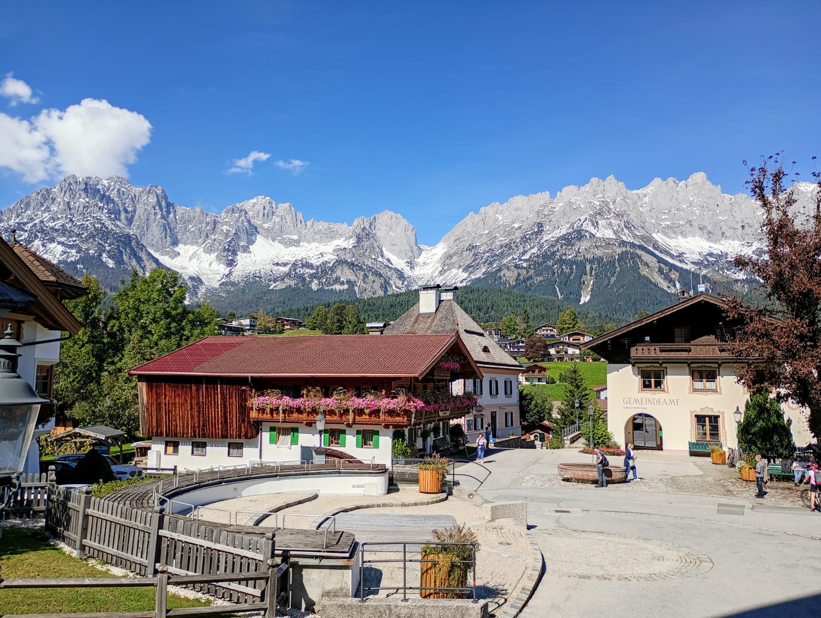 Am nächsten Tag erwartete uns Ulrike, die österreichische Reiseleiterin, sie führte uns durch Kufstein, zeigte uns dort bei einer einstündigen Stadtführung die Sehenswürdigkeiten. Dann ging es rund um den Wilden Kaiser und durch die Orte St. Johann und Going. In Going schauten wir uns dir Kirche und die Gebäude an, die viele von der Fernsehserie „Bergdoktor“ kannten. Nach der Rückfahrt, die uns wieder durch eine herrliche Landschaft führte, fuhren wir dann gleich nochmal in unserem „Heimatort“