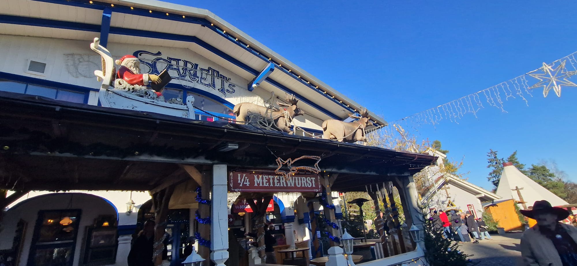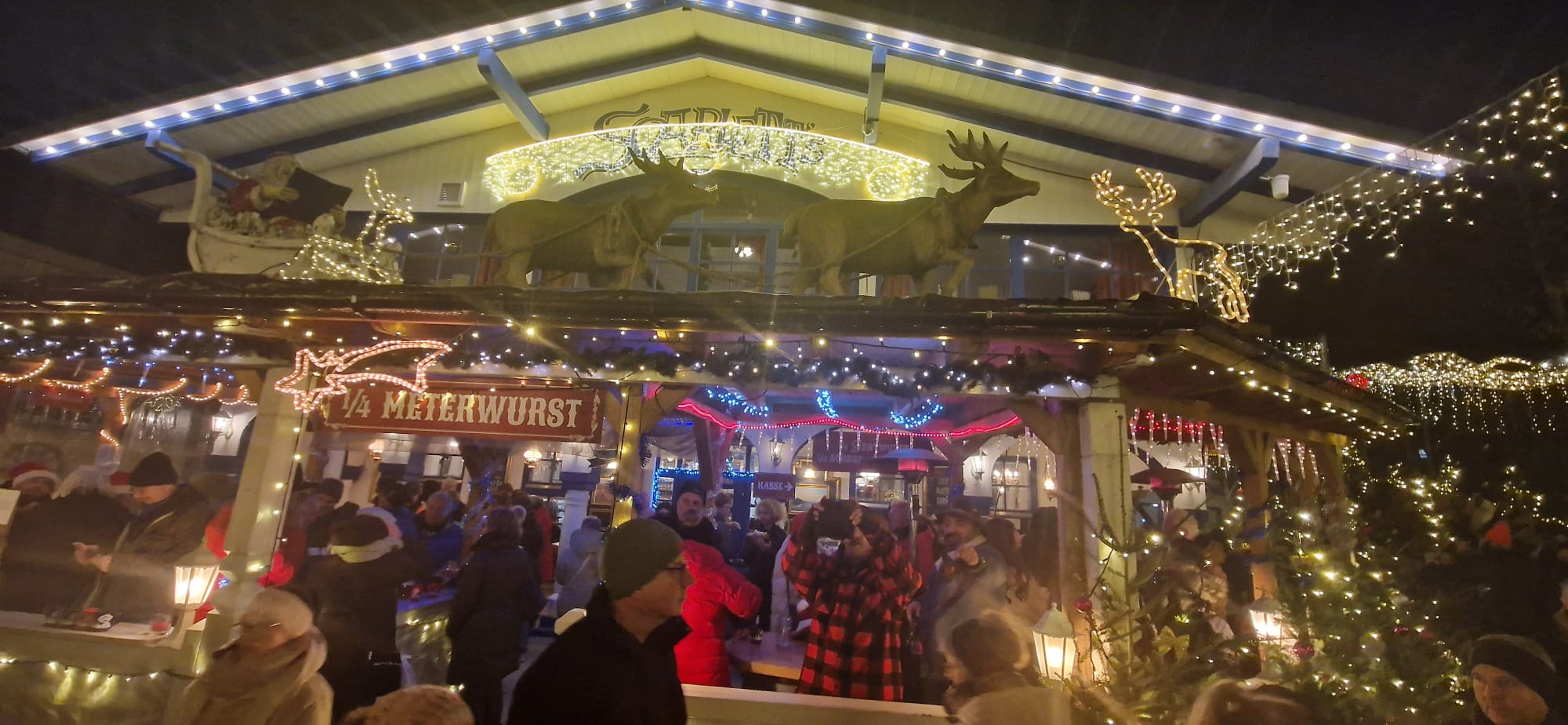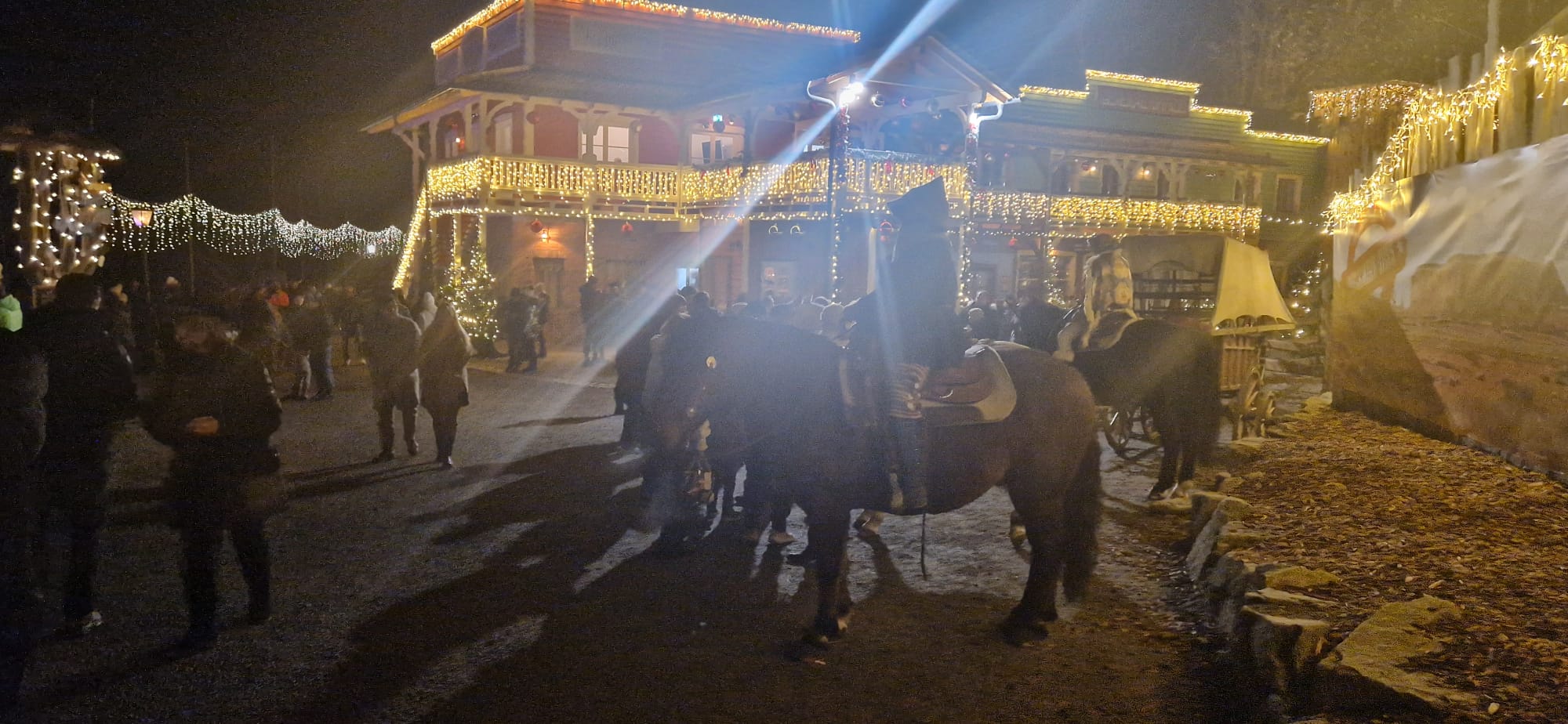 Am Morgen startete eine Gruppe von Kulmbach in Richtung Eging am See, in die Westernstadt Pullman City. Unterwegs machten wir eine kleine Pause bei Kaffee und Kuchen. In Pullman City wurden wir bei kühlen Temperaturen, aber strahlendem Sonnenschein vom Cowboy Rüdiger im Bus empfangen. Nach einer kurzen Einweisung zogen wir los. Die Westernstadt überzeugte durch die wundervolle Beleuchtung und Dekoration, die besonders ab Einbruch der Dämmerung so richtig zur Geltung kam. Durch das weitläufige Gelände konnte man wunderbar ohne Gedränge spazieren und sich an den zahlreichen Feuerstellen und -tonnen oder in einer der vielen Hütten mit Holzöfen aufwärmen. Unterwegs begegneten wir Weihnachtsfiguren aus der ganzen Welt, von Väterchen Frost, über den Weihnachtsmann oder das Christkind mit seinen Engeln auf Pferden. Auch der Grinch trieb sein Unwesen. Die Stände präsentierten Handwerkskunst und viele kulinarische Köstlichkeiten. Abgerundet wurde der Tag durch die Live Musik und Shows. Der deutsch-amerikanische Weihnachtsmarkt ist einfach etwas ganz Besonderes und versprüht Weihnachtsstimmung in jeder Ecke. Am Abend fuhren wir wieder nach Hause. Müde von der frischen Luft und dem ein oder anderen Punsch hielten die meisten von uns ein kleines Schläfchen. Ich bedanke mich bei all unseren Reisegästen für den erlebnisreichen Tag, wünsche eine frohe Vorweihnachtszeit und hoffe, wir sehen uns bei einer unseren vielen Reisen im neuen Jahr wieder!