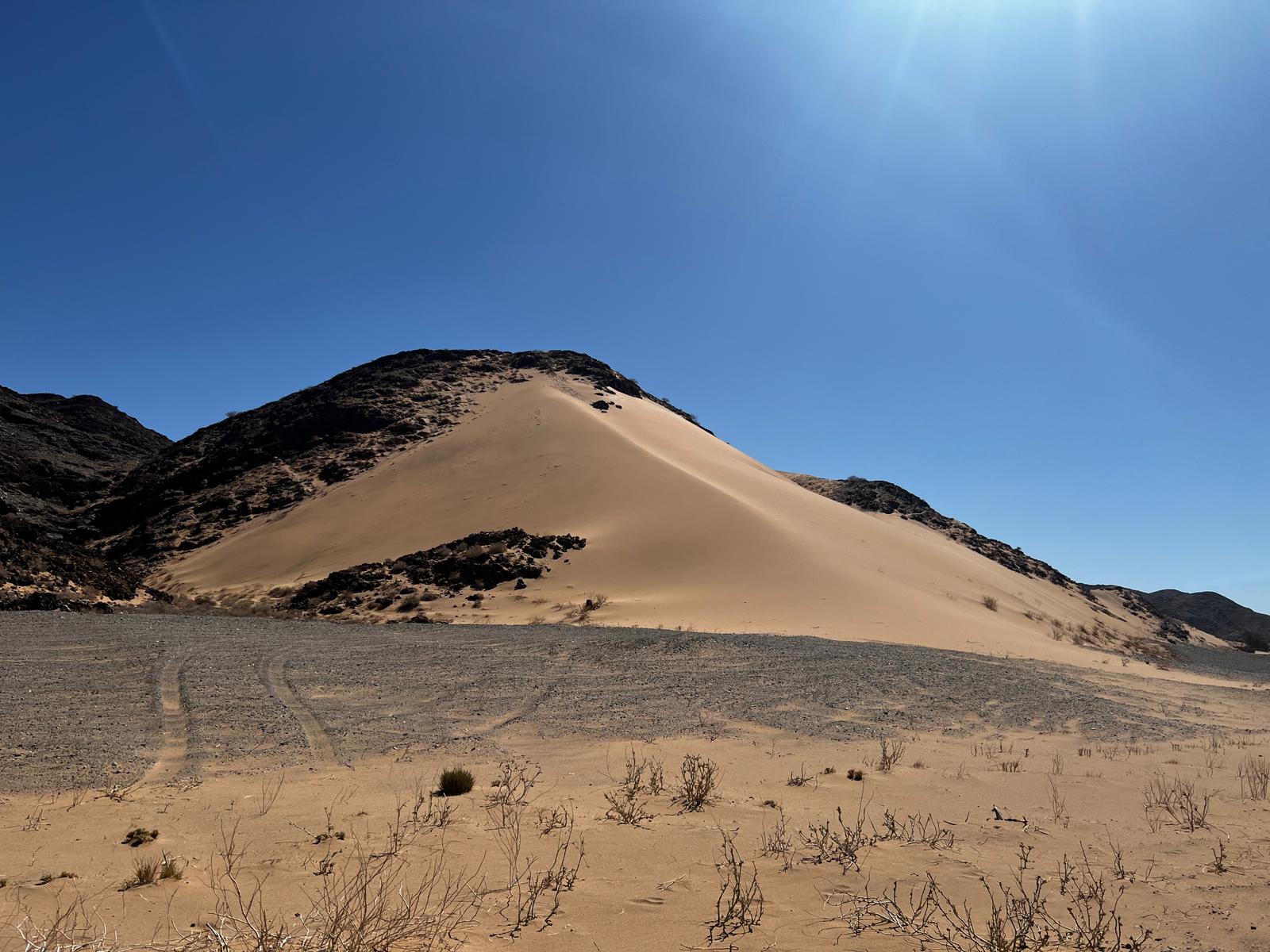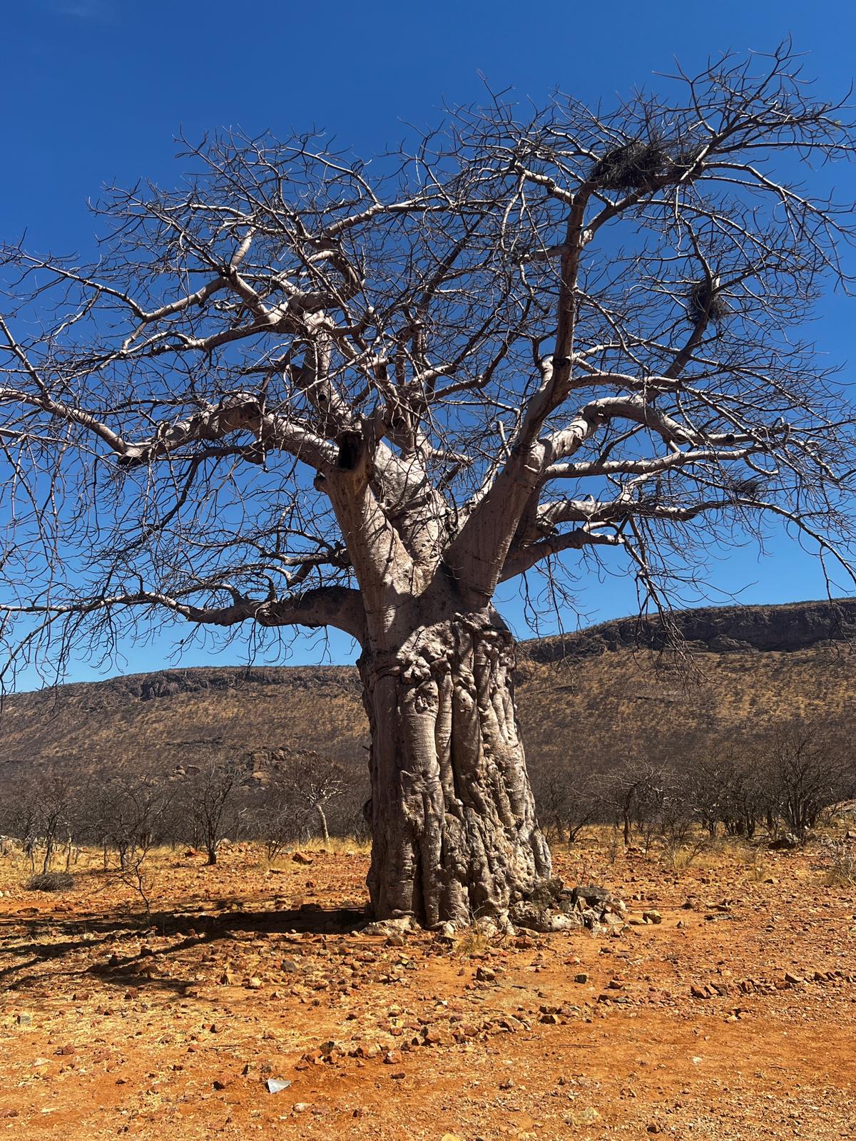 Unsere nächste Etappe war die spektakuläre Fahrt vorbei an vielen Baobab Bäumen durch das hügelige Kaokoland. Die ersten Himba-Dörfer konnten wir am Wegesrand sehen bevor wir in unsere Omarunga „Zelt-Lodge“ ankamen.