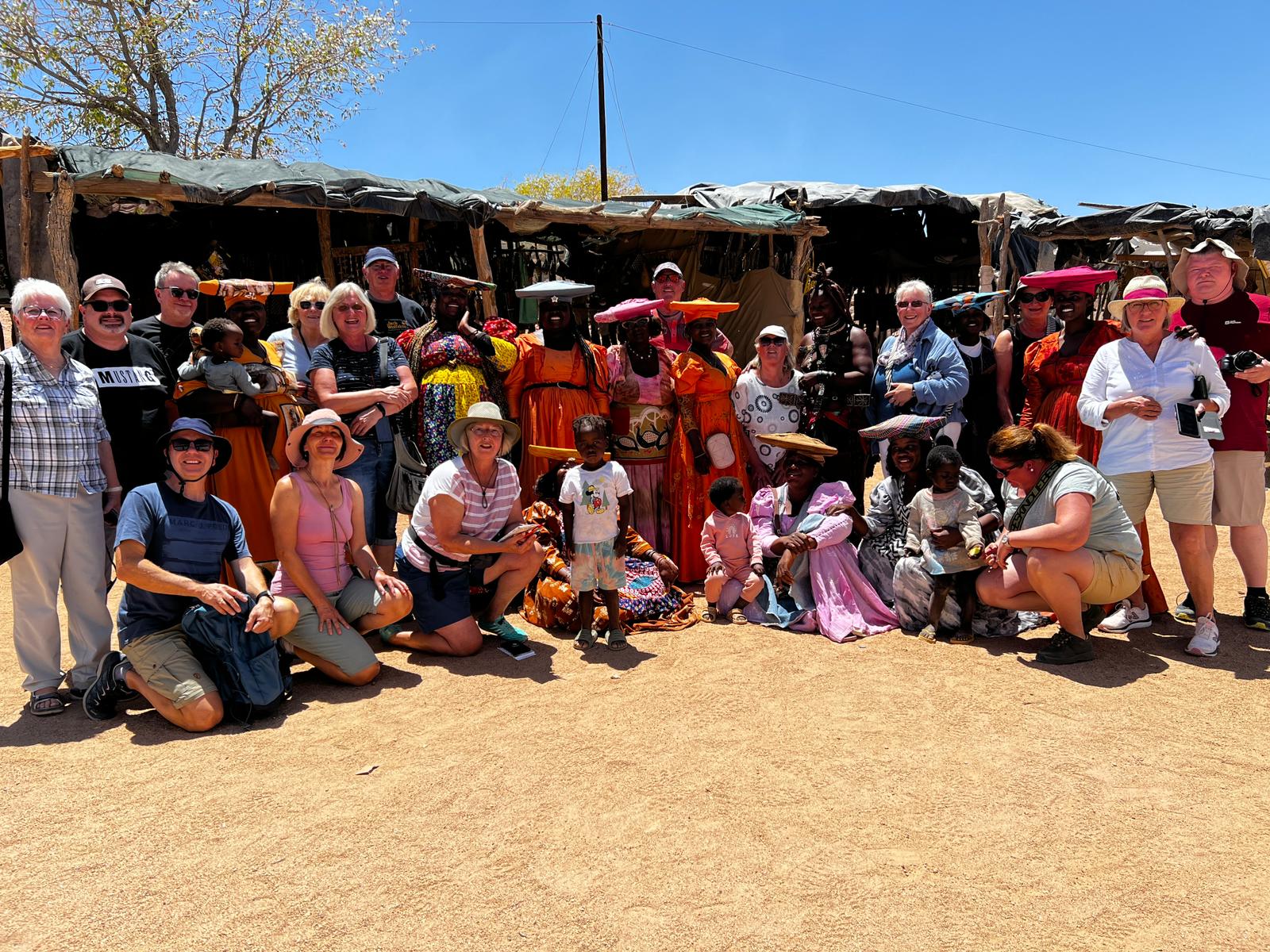 Unsere Weiterfahrt ging durch das Damaraland, hier besuchten wir die Hererofrauen auf einem typischen Markt. Bei der Fahrt zur Palmwag Lodge sahen wir die ersten Wüstenelefanten und bekamen Gänsehaut,