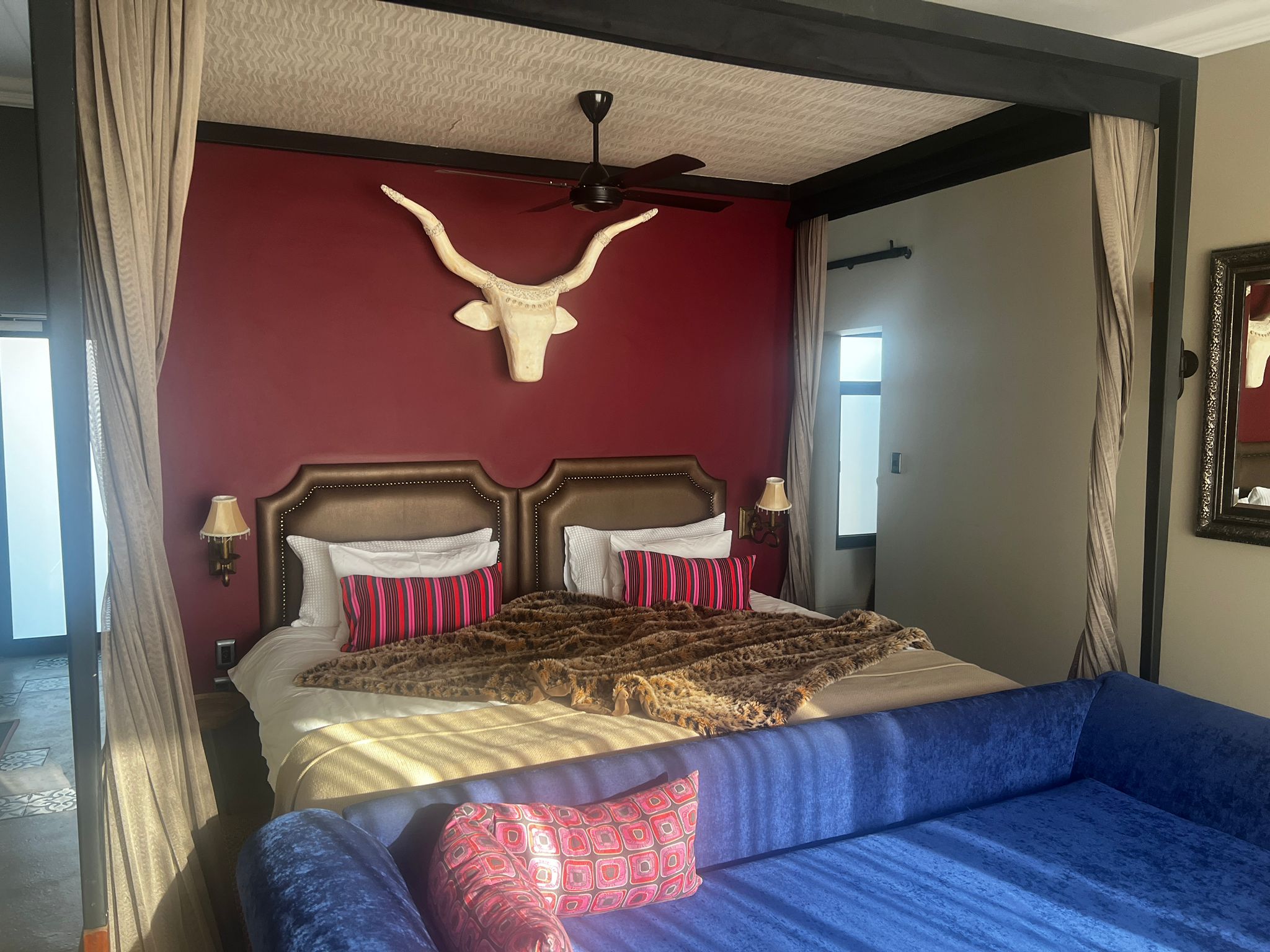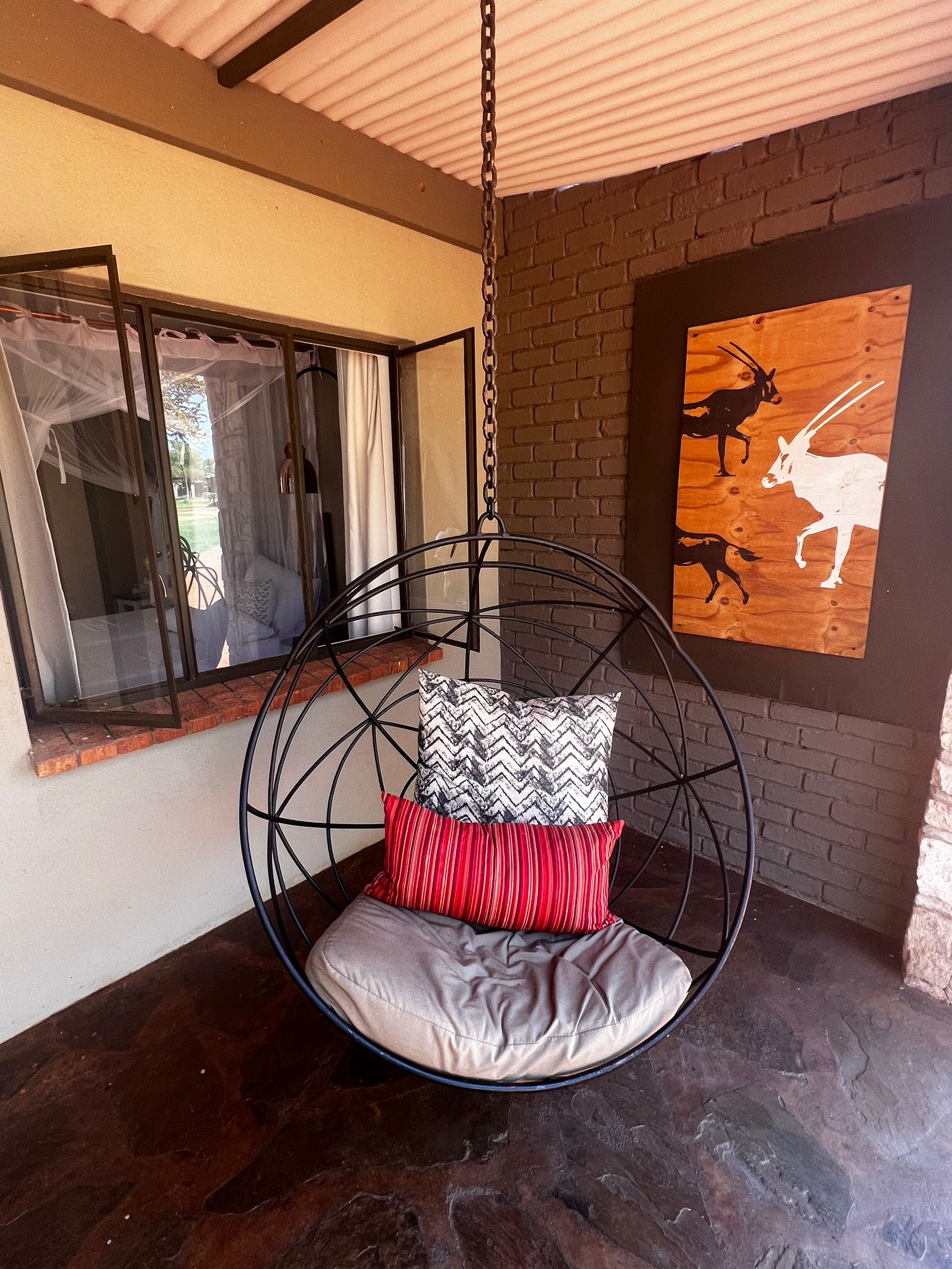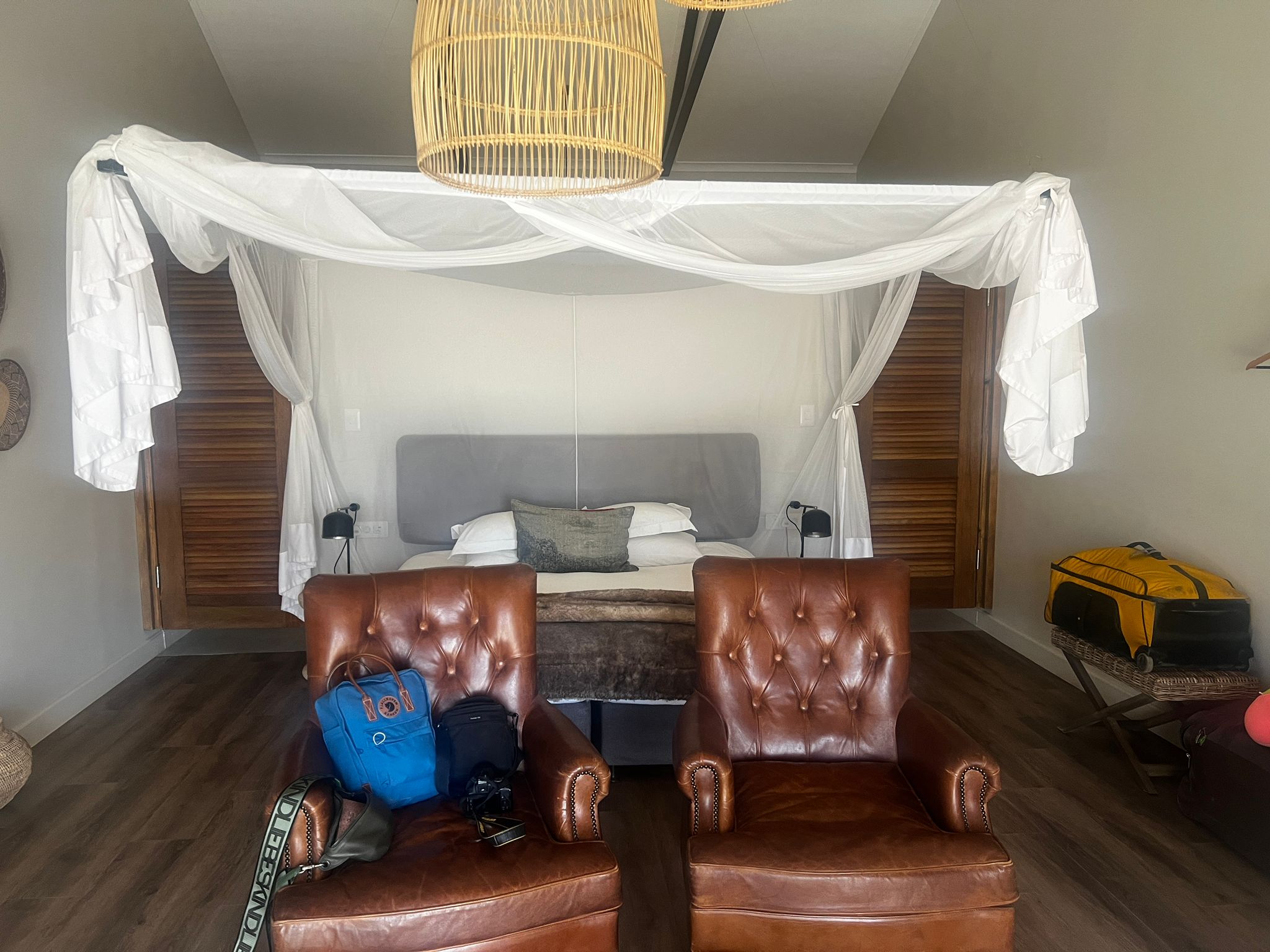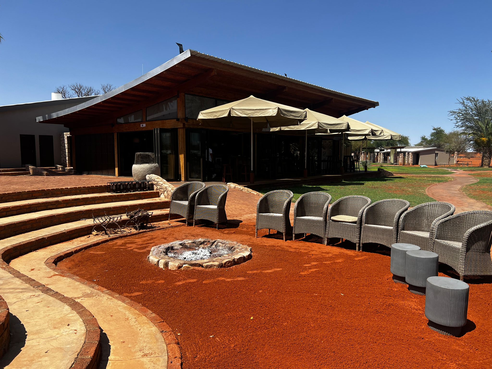 Am Nachmittag haben wir unseren privaten Pool genossen, denn am nächsten Tag wartete ein weiteres Highlight der Rundreise auf uns. Die Lodge Otjiwa! Im Stil einer Farmlodge mit viel Liebe zum Detail, was die Dekoration angeht,
