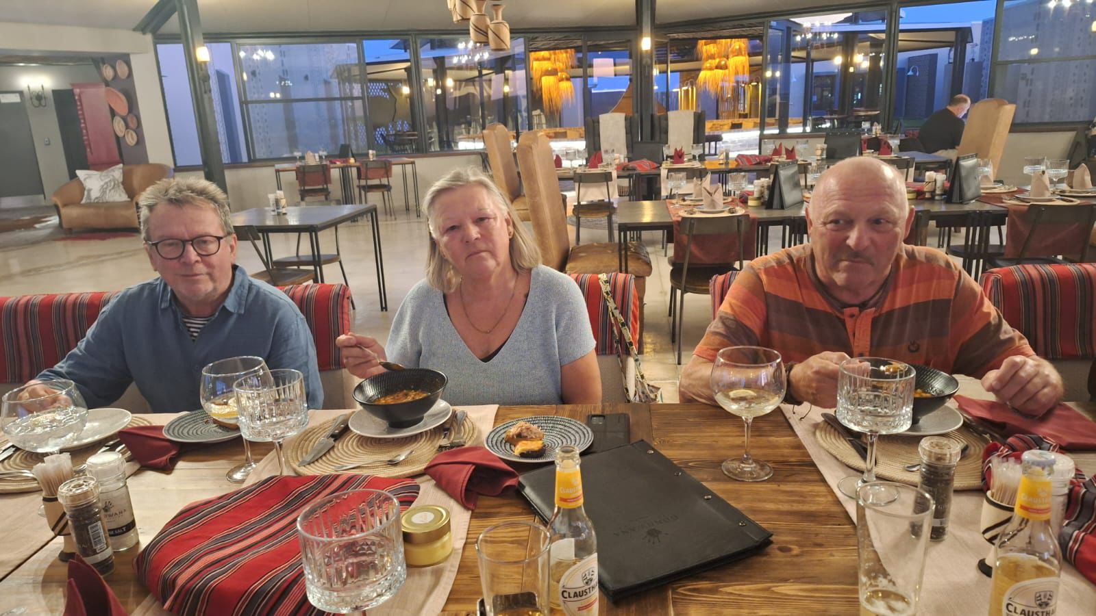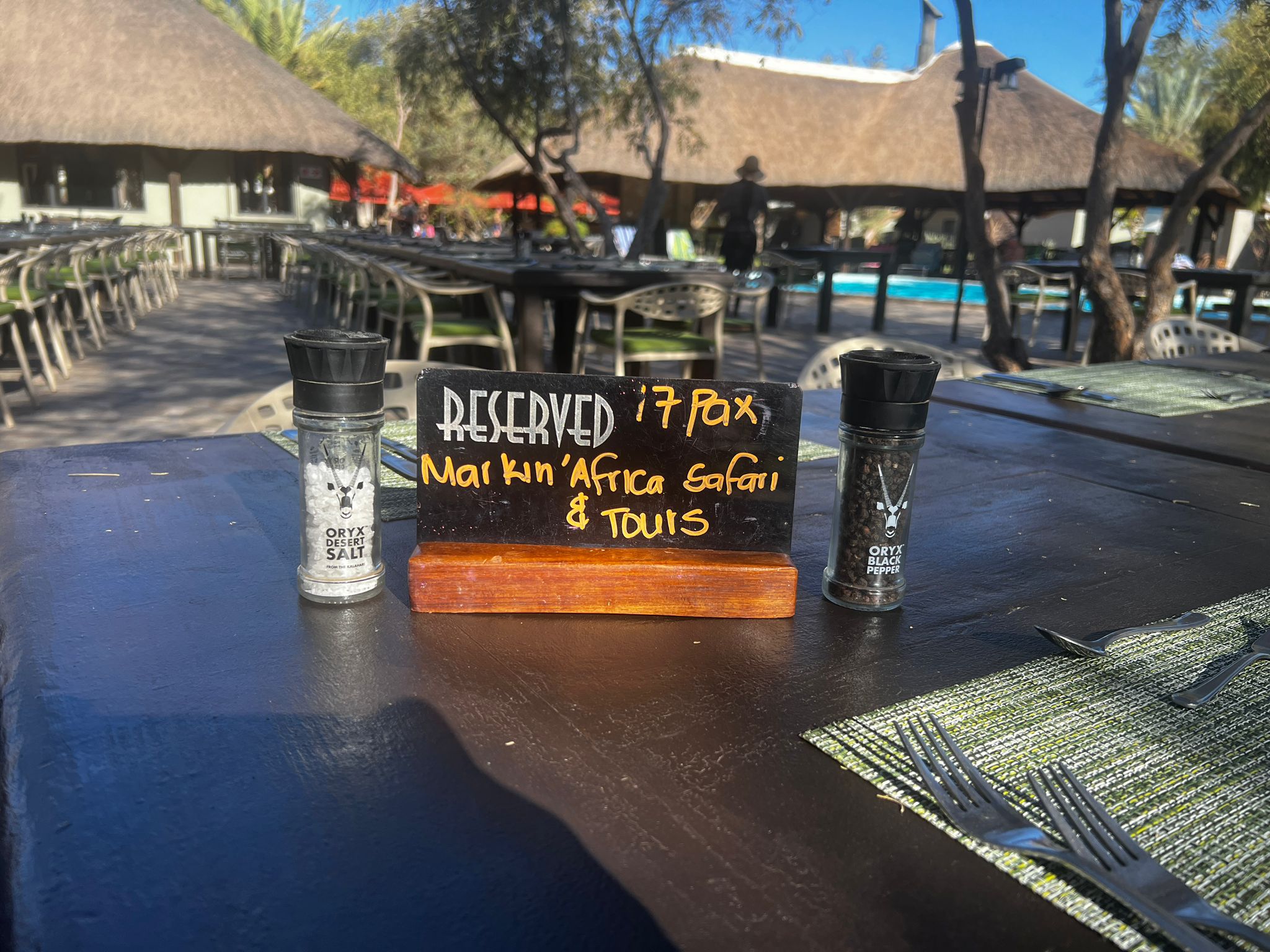Angekommen in der Kalahari Anib Lodge bekamen wir ein sehr spätes, aber leckeres Abendessen.