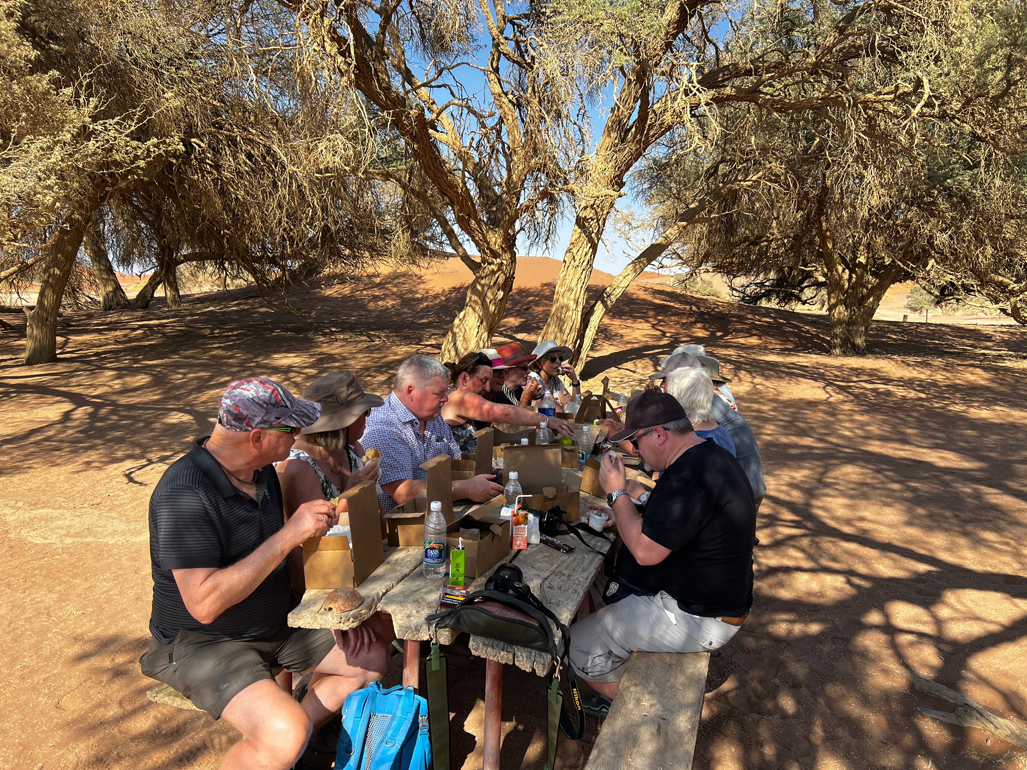 unter einem Kameldornbaum im Sossusvlei schmecken.