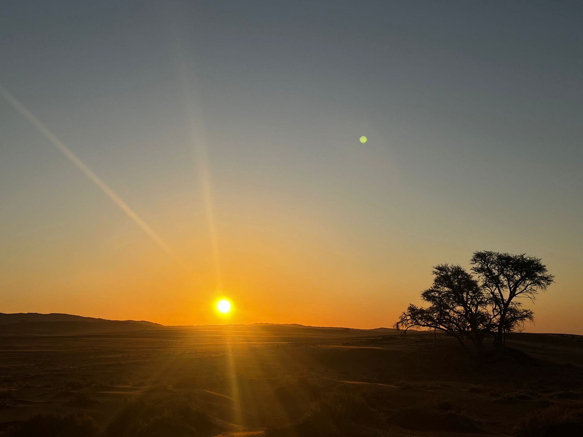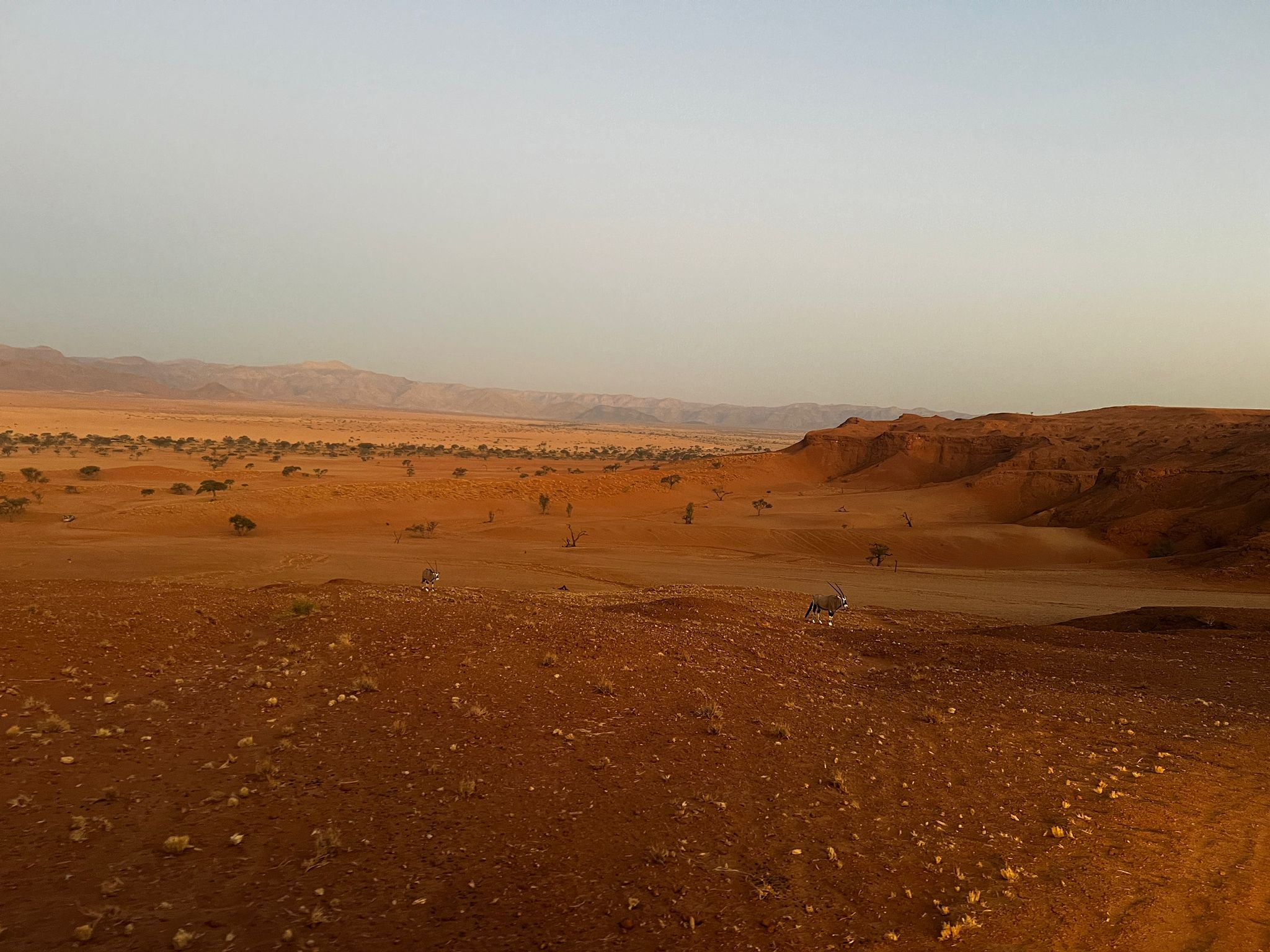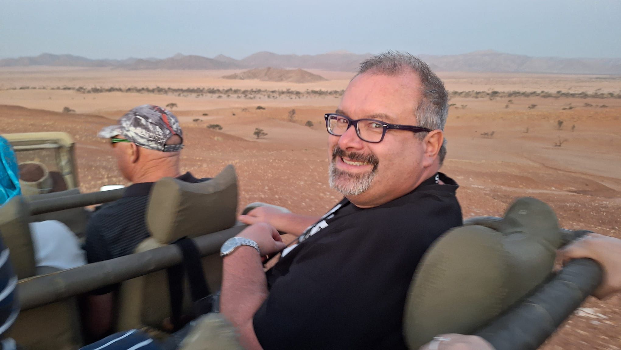 Am frühen Abend nahmen wir an der Farmrundfahrt in der Namib Wüste teil und wieder bei einem GinTonic sahen wir der Sonne beim verabschieden des traumhaften Tages zu.