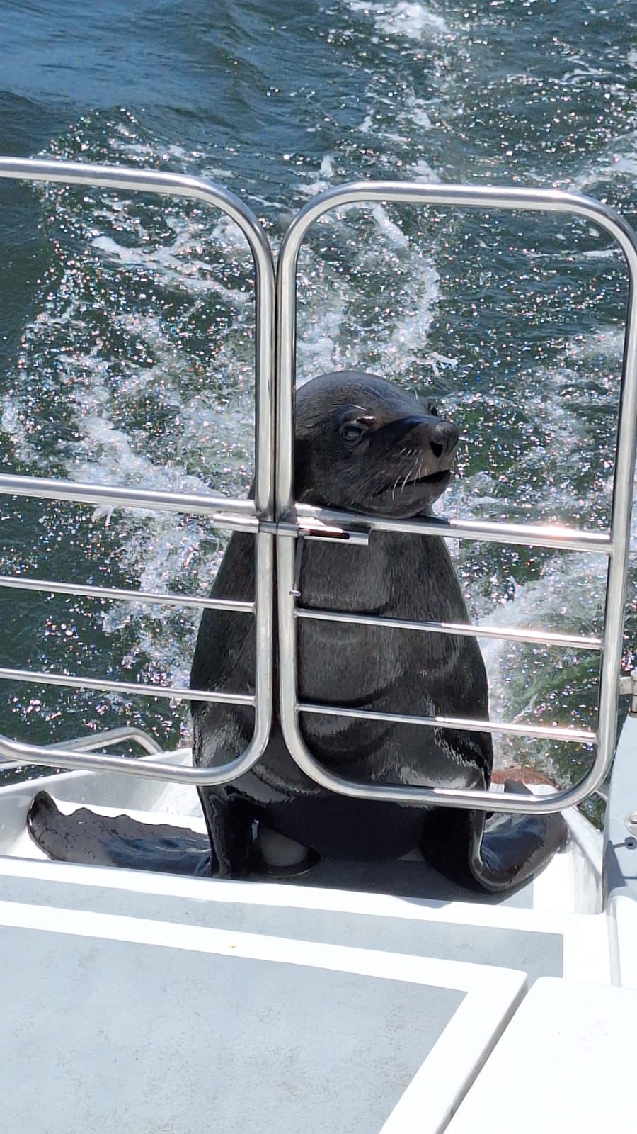 Bevor am nächsten Vormittag die Katamaranfahrt auf uns wartete. Pelikane und Robben kamen aufs Boot, wir sahen Delphine neben dem Katamaran herschwimmen und