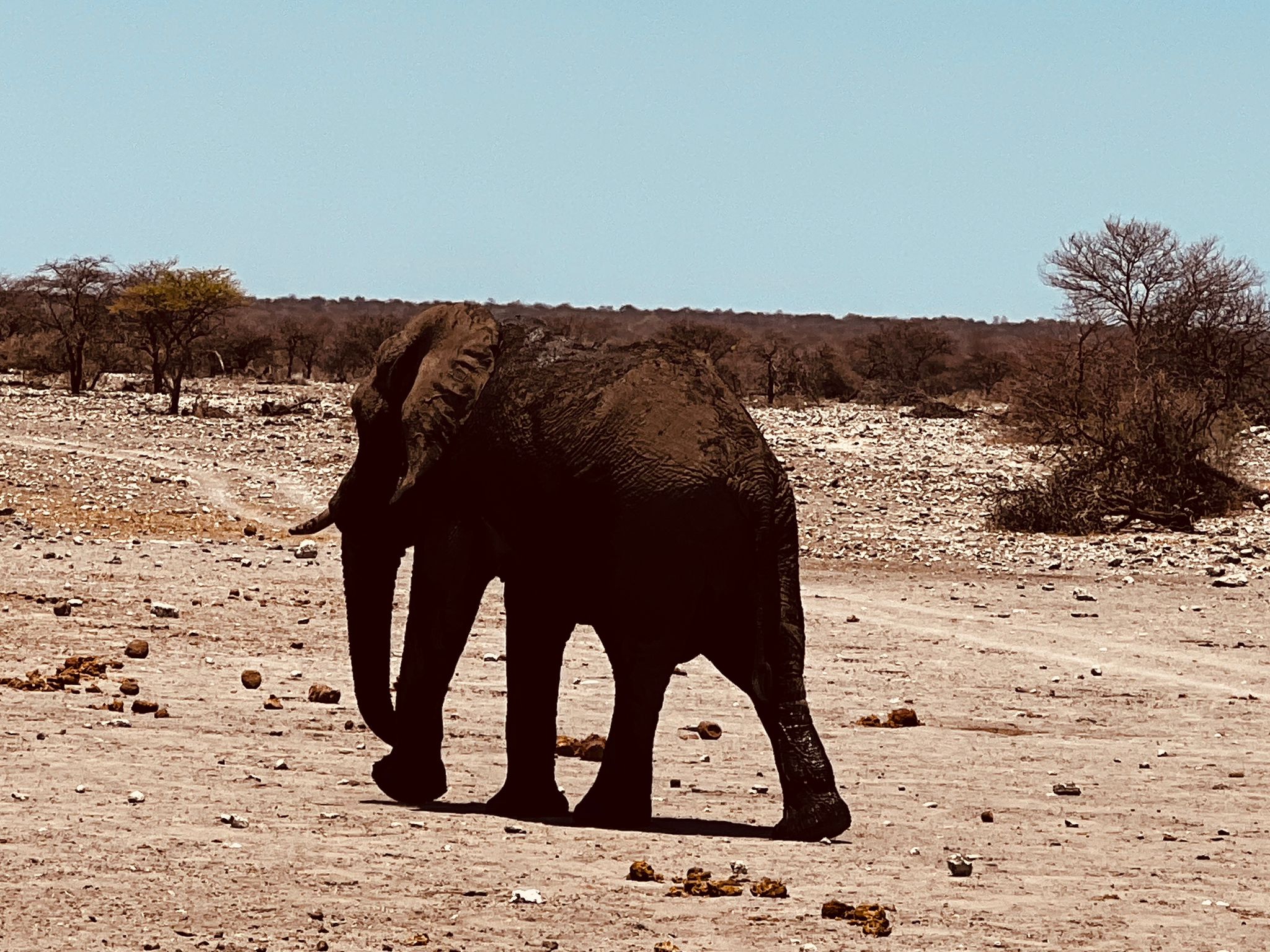 Am Vormittag ging es in den weltberühmten Etosha Nationalpark, wir sahen unzählige Knus, Giraffen und viele Wildtiere. Auf Entfernen beobachten wir zwei Löwen im Schatten und vereinzelt ließen sich auf Elefanten im Busch und
