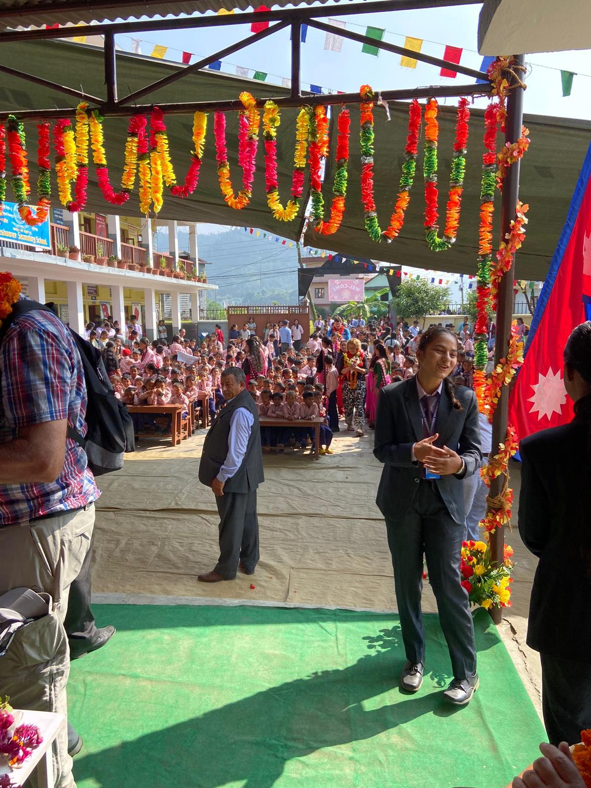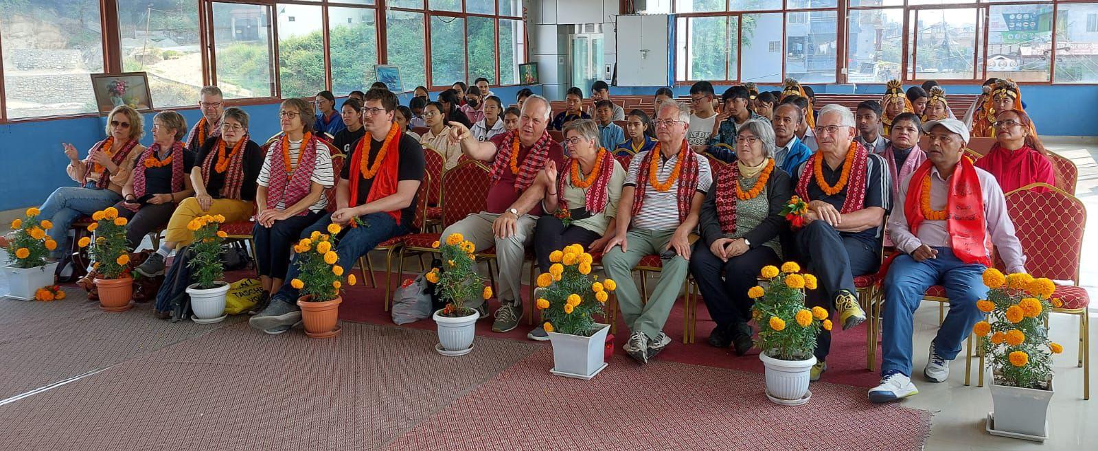 Heute ging es zur Bageshwori Secondary und Primary School. Davor konnten wir auf dem kleinen Markt von Malekhu einkaufen. Schon bei der Tilingatar School war der Empfang wunderbar, aber dieser Empfang hat uns alle sehr demütig gemacht. Es ist kaum in Worte zu fassen!! Wir waren die Ehrengäste und es wurde getanzt und gelacht und dieses Erlebnis brachte uns die Kultur, die Menschen und besonders die Kinder sehr nahe. Nach dem Mittagessen wurden die Patenbriefe und Geschenke übergeben und auch ein Gespräch mit den Lehrkräften stand auf dem Programm. Erfüllt von all dem , kehrten wir in unser Resort zurück, um gemeinsam zu essen.