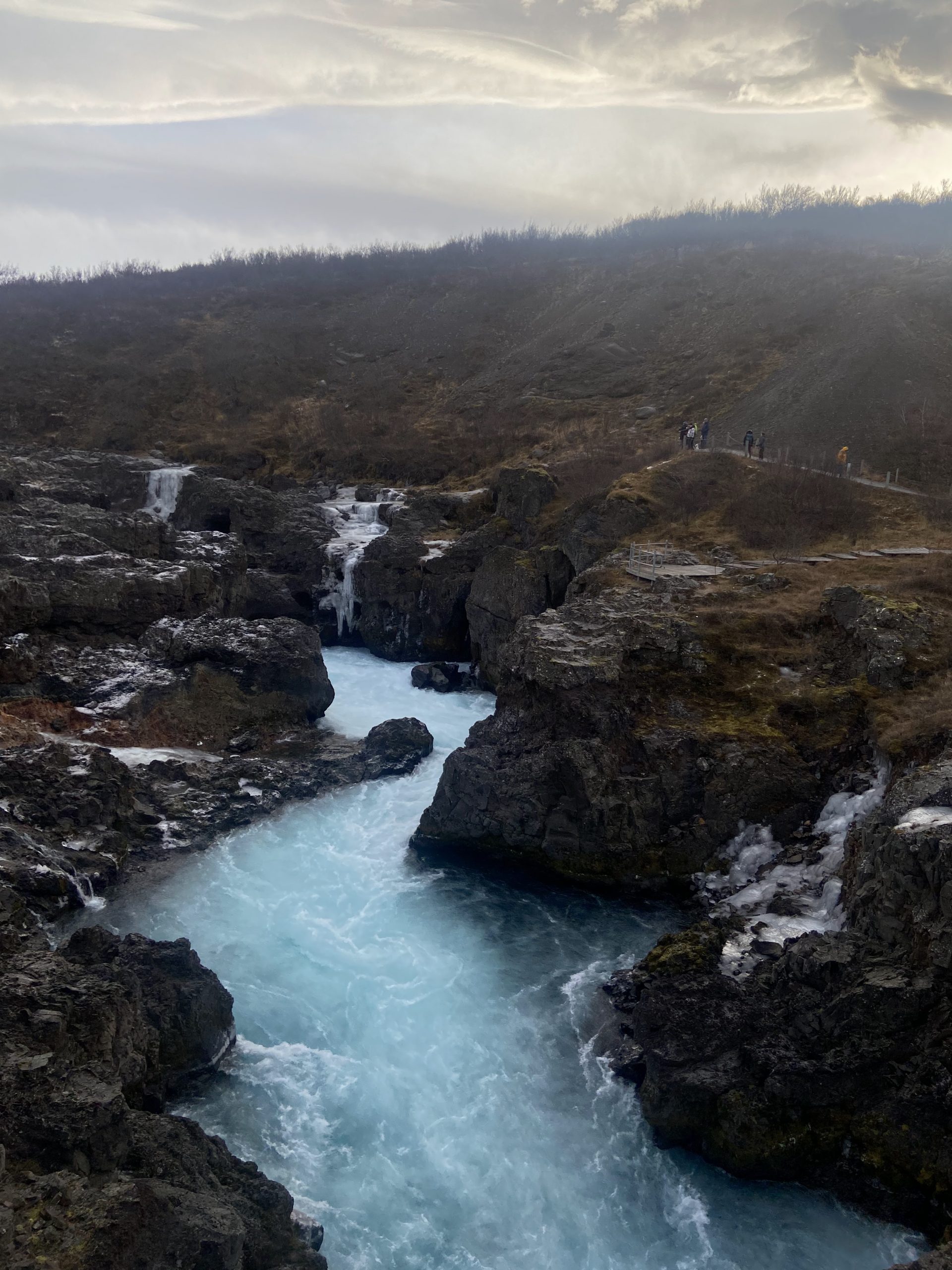 Aufgrund der Vulkantätigkeiten bzw. des befürchteten Ausbruchs war unser Ausflug zur Halbinsel Reykjanes leider nicht möglich. So fuhren wir in den Westen Islands, um dort 98 Grad heiße Quellen zu besichtigen in Reykholt, weiter zu einem wunderschönen Wasserfall mit Schlucht , dem Hraunfossar, hier fliessen Wasserfälle aus einem Lavafeld, dann zu Snorri Sturluson, Historiker und Gode und mächtigster Mann auf Island. Zurück in Reykjavik blieb noch genug Zeit andere Ecken der Stadt zu erkunden, Souvenirs zu erstehen, um dann gemeinsam im nahegelegenen „Foodcellar“ ein ausgezeichnetes Abschiedsessen einzunehmen.