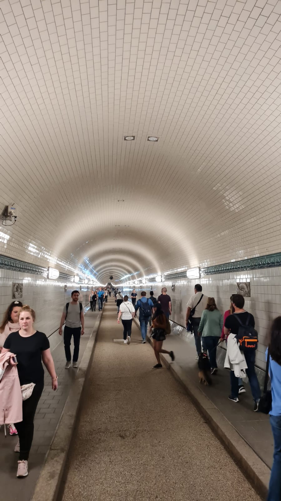 Nach der Rundfahrt gab es noch etwas freie Zeit, die jeder anders nutzen konnte. Unsere zweite Reisebegleitung, Ines Worschech die mich dauerhaft unterstützte und ich, haben einen Spaziergang durch den Alten Elbtunnel gemacht und gingen auf die andere Uferseite.