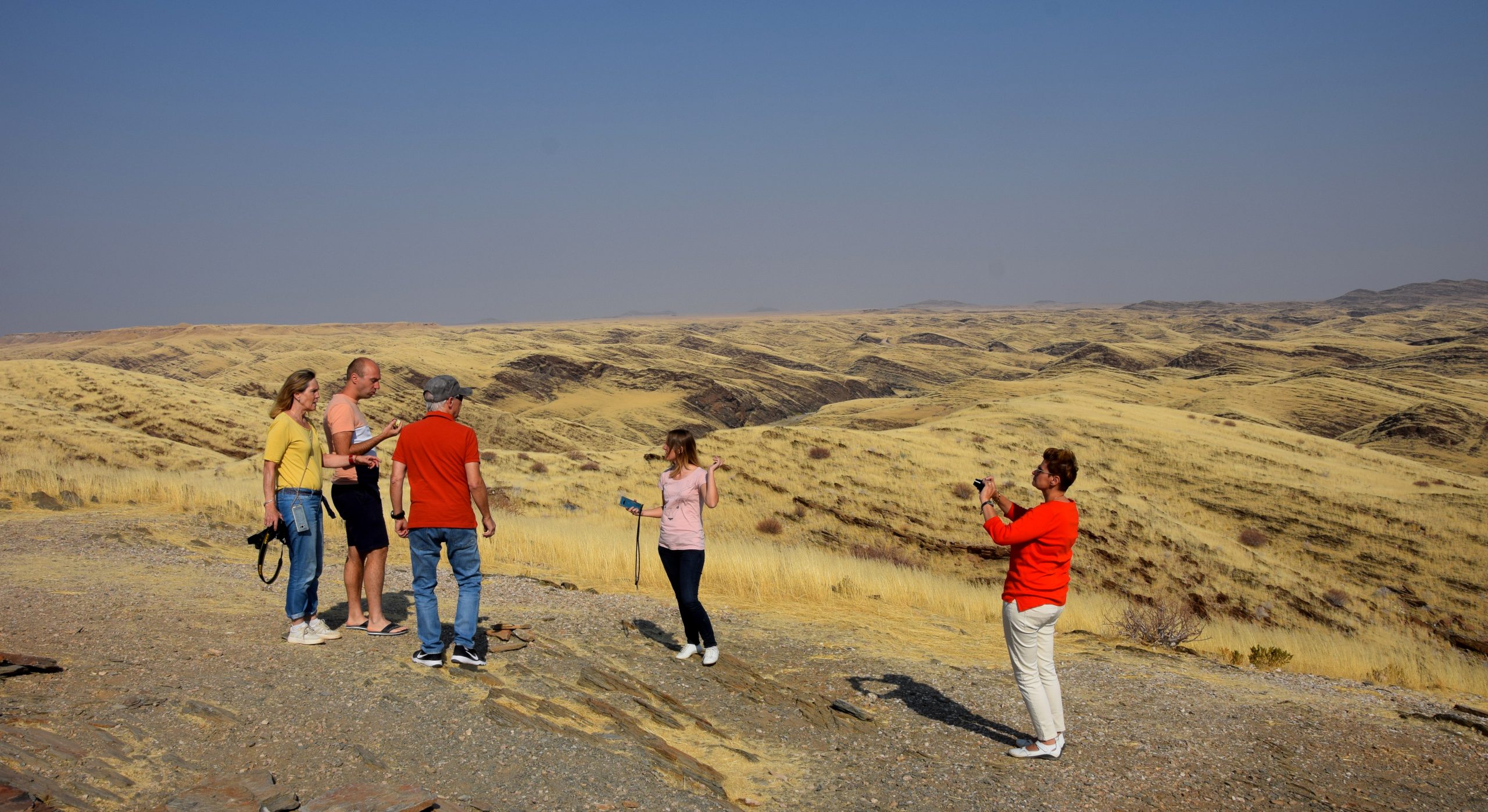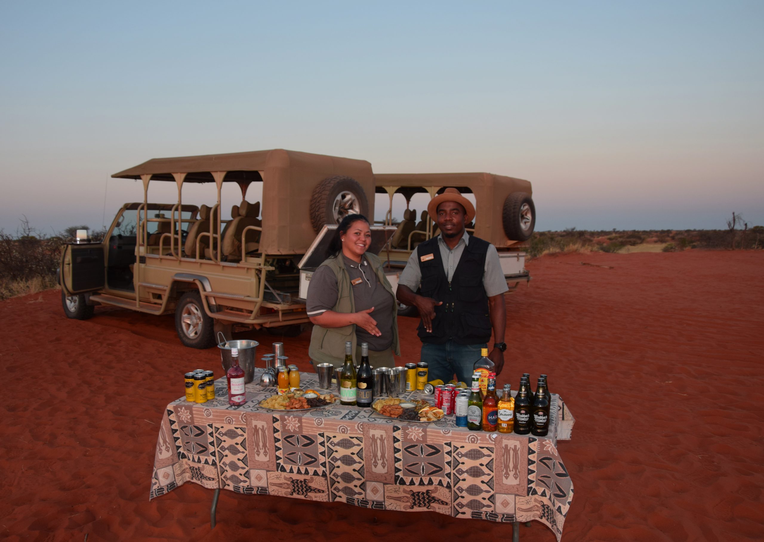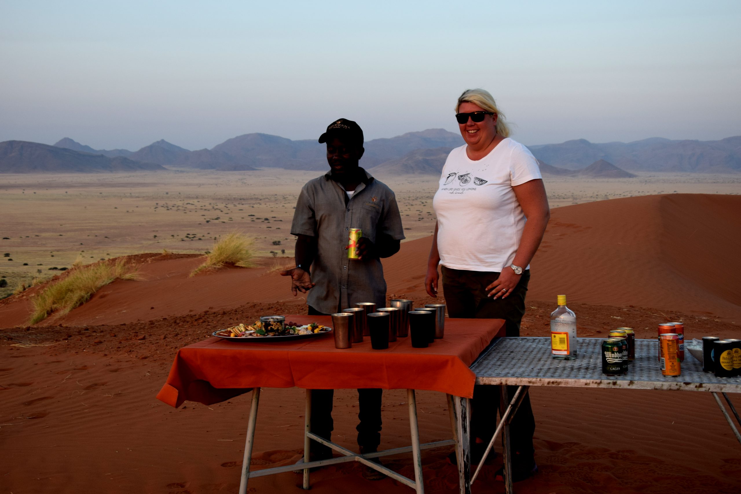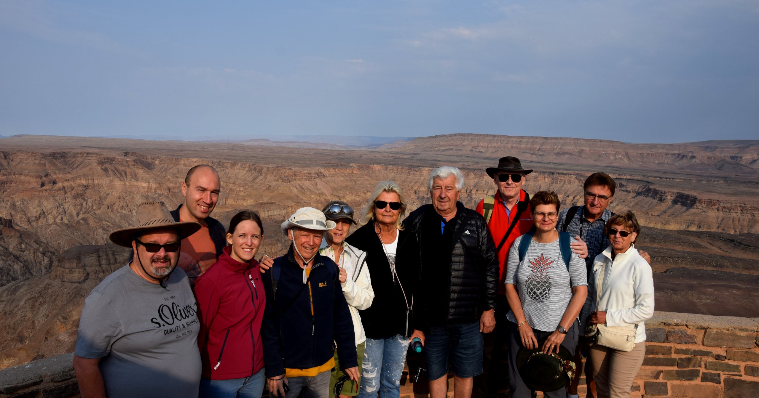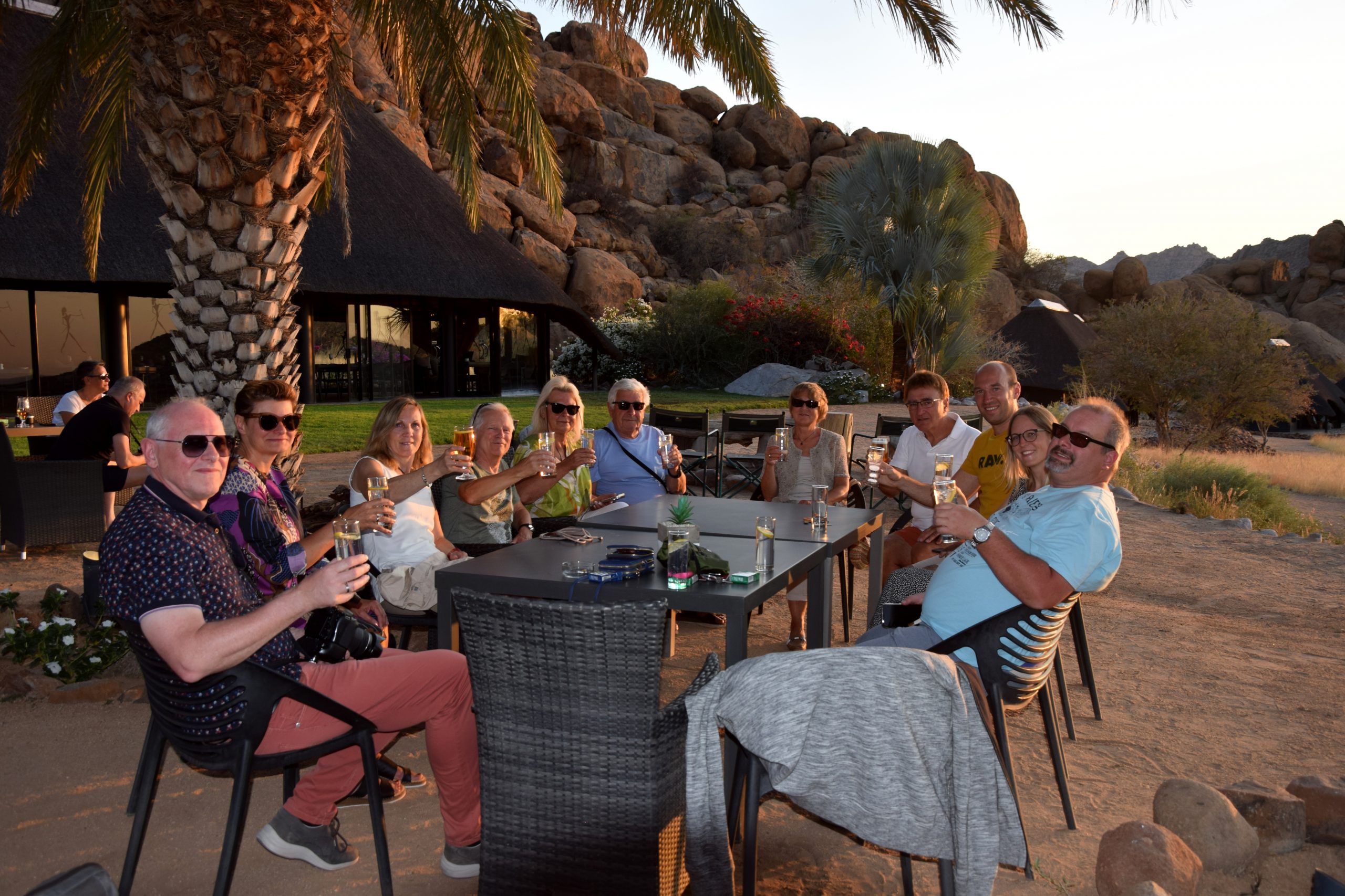 Für unsere fantastische Namibia Rundreise starteten wir Ende August mit der gemeinsamen Busanreise nach Frankfurt. Der Direktflug mit Eurowings Discover nach Windhoek ging über Nacht und am nächsten Morgen begrüßte uns unser Reiseleiter Mark Wiechmann herzlich in Namibia am Flughafen. Mark organisiert und führt unsere gemeinsamen Gruppenreisen seit über 12 Jahren durch das südliche Afrika. Nach einem kurzen Stopp in Windhoek, hier durfte natürlich die Christuskirche nicht fehlen, ging unsere Fahrt Richtung Süden in die Kalahari Wüste. Pünktlich um an der Sundowner-Fahrt teilzunehmen, kamen wir auf der schönen Kalahari Anib Lodge an. Während der Rundfahrt begrüßten uns die ersten heimischen Wildtiere, Giraffen und Strauße. Bei einem ersten gemeinsamen Gin Tonic genossen wir einen traumhaften Sonnenuntergang in der Kalahri Wüste während wir auf dem rotem Sand standen. Weiter ging unsere Fahrt am nächsten Tag Richtung Süden, wir sahen die ersten gebauten einheimischen Siedlungen am Wegesrand und machten einen Stopp beim Köcherbaumwald. Nun ging es auf die Schotterpiste! Nach Ankunft in der Canyon Village Lodge, die wir für zwei Tage bezogen hatten, gingen wir zu Fuß zu einem wunderschönen Aussichtspunkt und ließen uns von dem prächtigen Farbenspiel des Sonnenuntergangs in der Nähe des Fish River Canyons einen leckeren Gin Tonic schmecken. Am frühen Morgen stand eine Wanderung entlang des zweit größten Canyons der Welt auf unserem Programm. Einzigartig und überwältigend empfanden wir die Landschaft und den Canyon. Am Abend gab es leckere Orex- und Springbock-Steaks – extra für uns gegrillt. Weiter über Schotterpisten ging unsere Fahrt über Helmeringhausen in die Namib Wüste. Ein weiteres Highlight der Reise wartete auf uns, als wir am frühen Morgen bereits zum Sonnenaufgang das Eingangstor des Namib Naukluft Parks passierten. Hier erwarteten uns mit die höchsten Sanddünen der Welt und das berühmt Dead Vlei, welches wir nach einem Spaziergang durch den Sand erreichten. Sensationelle Fotoaufnahmen und ein fantastisches Gefühl nahmen wir von diesem ganz besonderen Ort in der Wüste mit. Erreichten wir doch bereits am nächsten Tag nach der Fahrt durch den Sesriem Canyon und der Wüste das kleine, schnucklige Örtchen Swakopmund am Atlantik. Wir fuhren über Walvis Bay, links der Atlantik und rechts die hohen Sanddünen nach Swakopmund rein, hier begrüßte uns herzlich das Personal des im Kolonial Stil erbauten Hansa Hotels. Ein echter Kontrastauflug war die Katamaran-Fahrt in Walvis Bay zur großen Robben Kolonie. Viele Delphine, Pelikane aber auch ein Wal kam uns vor die Linse. Am Abend gingen wir im typischen Brauhaus in Swakopmund essen und an der Hotelbar wurde uns ein typischer Kolonial-Kaffee serviert. In Swkapmund wurden die Mitbingsel eingekauft bevor es dann weiter Richtung Norden zur Ai Aiba Ldoge im Erongo-Gebirge ging. In dieser tollen Lodge verbrachten wir den Nachmittag am Pool in einer grandiosen Landschaft und gingen zu den Felskravuren Spazieren. Ganz besondere Begegnungen hatten wir auf der Fahrt durch das Damaraland. Hier besuchten wir die Himbas und Herero-Völker. In der Damara Mopane Lodge angekommen, ließen wir den Abend bei einem spektakulären Sonnenuntergang von der Aussichtsterrasse der Lodge ausklingen und waren gespannt auf den Etosha Nationalpark, den wir für 2 Tag besuchten. Das wir bei den Tierbeobachtungen so gut sehen werden, hatte keiner von uns gedacht. Durften wir doch Giraffen, Zebras und einen Elefanten am Wasserloch des Nationalparks beobachten. Gänsehaut-Feeling kam auf, als wir Löwen sahen, sogar bei der Paarung und zwei Spitzmaul-Naßhörner ließen sich auch blicken. Die Fahrt am ersten Tag mit dem offenen Geländewagen und auch am zweiten Tag mit dem Bus waren ein voller Erfolg und ein einzigartiges Erlebnis, rundete doch unsere Überraschung – ein kleiner aufgebauter Imbiss mit vielen leckeren und einem Gin Tonic den Besuch im Etosha Nationalpark ab. Nun ging es leider wieder Richtung Süden und Windhoek – hier übernachteten wir in der schönen Midgard Country Lodge und ließen uns bei einem Grill-Buffett verwöhnen. Am Abend saßen wir rund ums Lagerfeuer, tauschten unsere schönsten Momente der Reise aus, ließen die Rundreise Revue passieren und waren uns alle einig: Namibia ist immer eine Reise wert und unsere Rundreise war ein Feuerwerk an Erlebnissen, an die wir immer wieder gerne zurück denken.