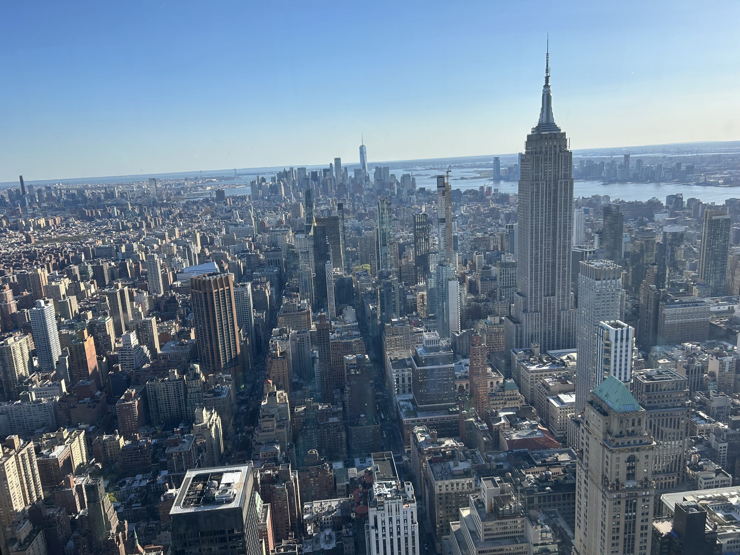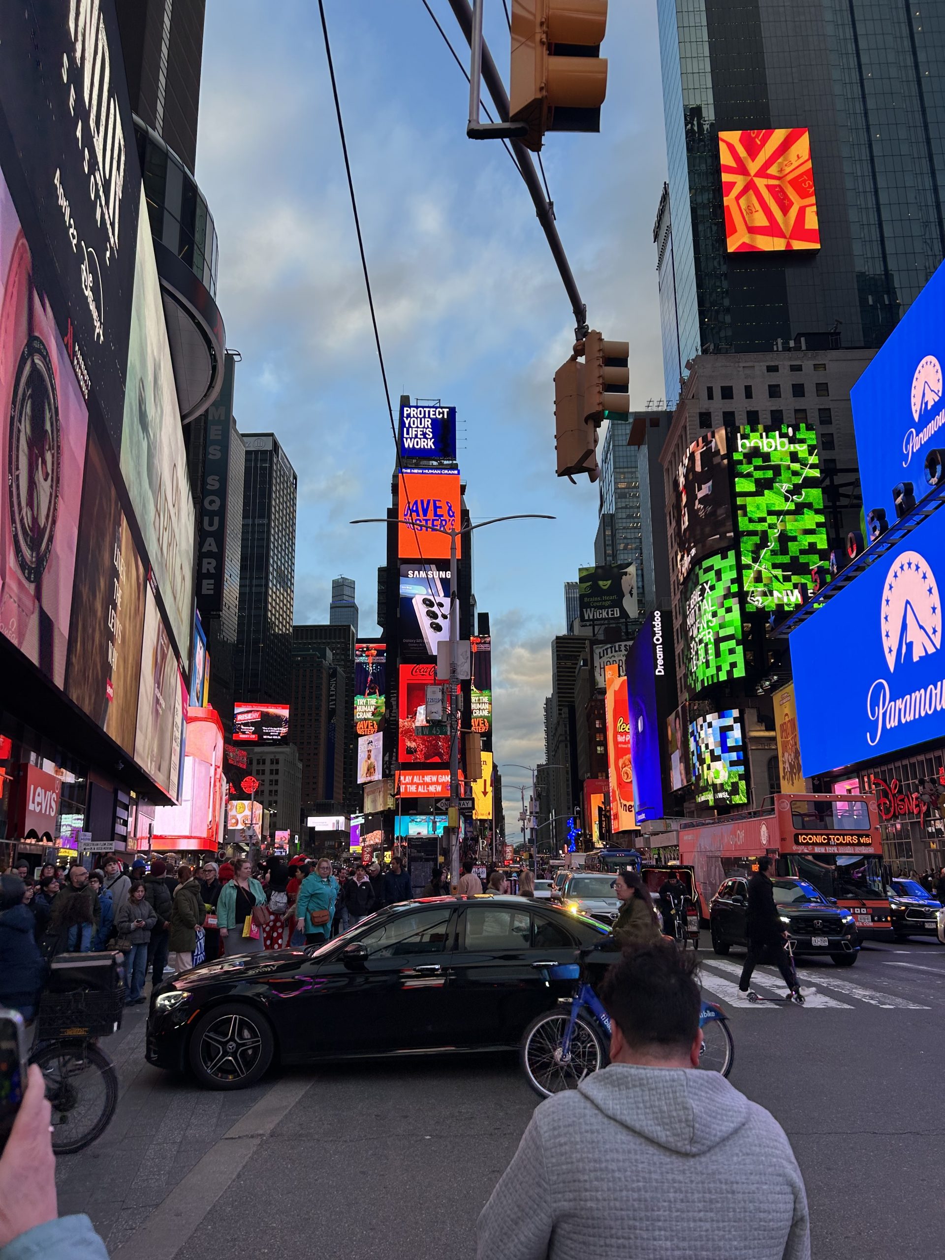 Am Mittwoch, den 16. April startete in der Nacht unsere 5-tägige Gruppenreise nach New York. Mit einem Bus der Fa. Pomper fuhren wir zum Flughafen Frankfurt. Von dort aus erreichten wir dank dem Direktflug mit der Singapur Airlines, gegen 12 Uhr den JFK Airport. Nachdem wir die nervigen und zeitaufwändigen – aber leider notwendigen – Einreiseformalitäten erledigt hatten, empfing uns unsere Reiseleitung Lisa in der Ankunftshalle. Von dort aus brachte uns ein Bus direkt zum Hotel Moxy NJC Time Square. Nach nur wenigen Metern zu Fuß erreicht man direkt den Times Square und den Broadway. Der Rest des Tages stand zur freien Verfügung und wir erkundeten die nähere Umgebung.