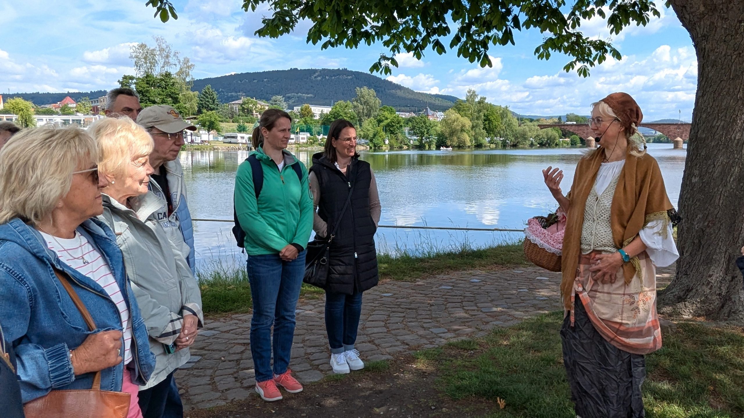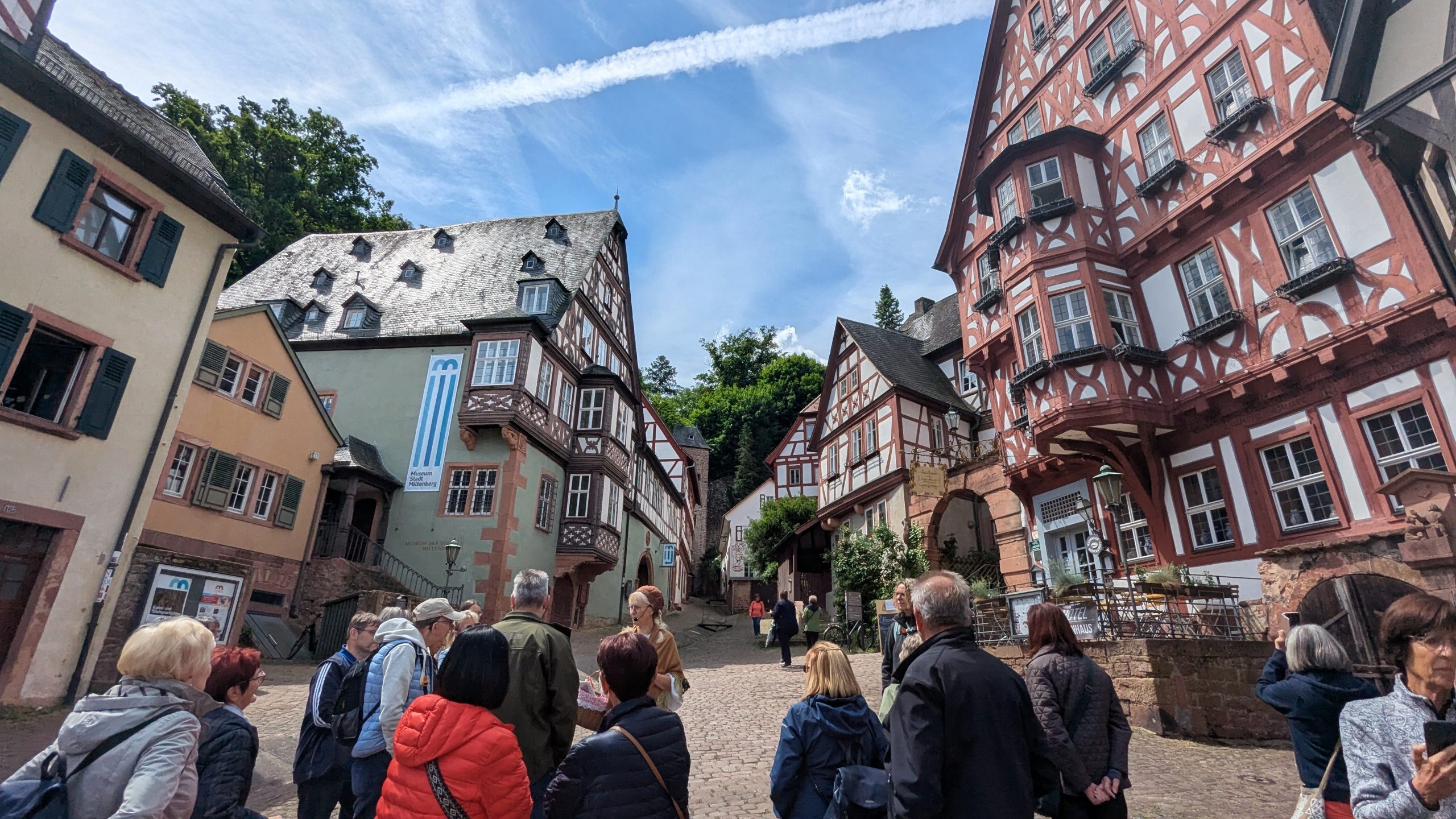 Um kurz nach elf trafen wir „Marktfrau Berta“, unsere Stadtführerin, am Mainufer in Miltenberg. Auf einem 90minütigen Rundgang durch die Altstadt erhielten wir einen Einblick in die mittelalterliche Blütezeit der charmanten Fachwerkstadt – in sympathisch hessischem Dialekt und inklusive Gesangseinlage.