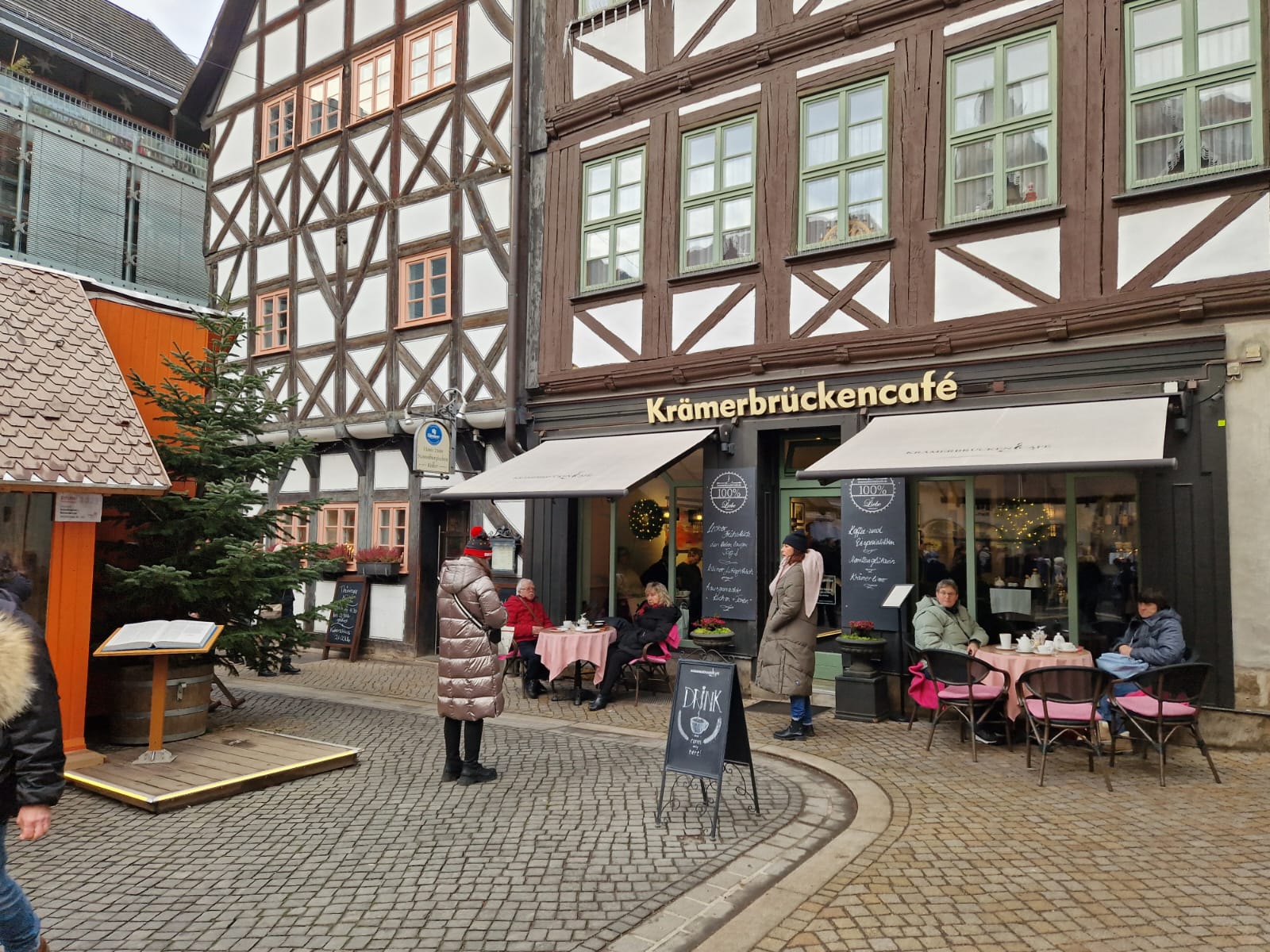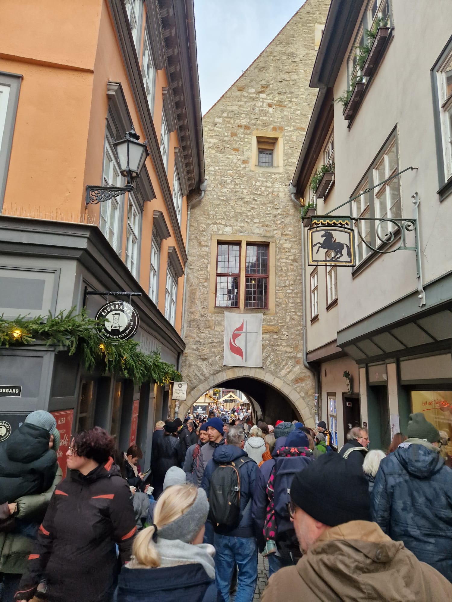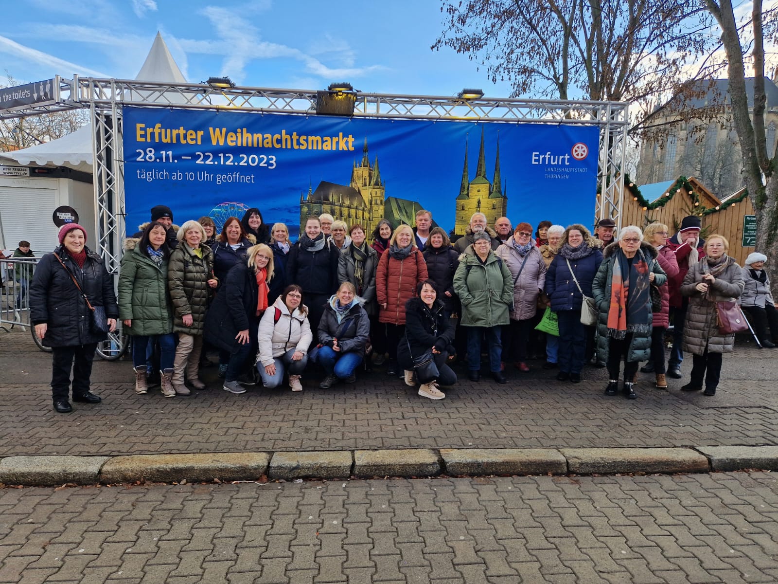 Pünktlich kamen wir in Erfurt am Domplatz an. Hier entstand auch unser Gruppenfoto. Danach konnten wir die Stadt sowie die verschiedenen Weihnachtsmärkte erkunden. Erfurt hat eine sehr gut erhaltene Altstadt mit historischen Gebäuden wie dem Dom und der Krämerbrücke, einer der ältesten bewohnten Brücken Europas.