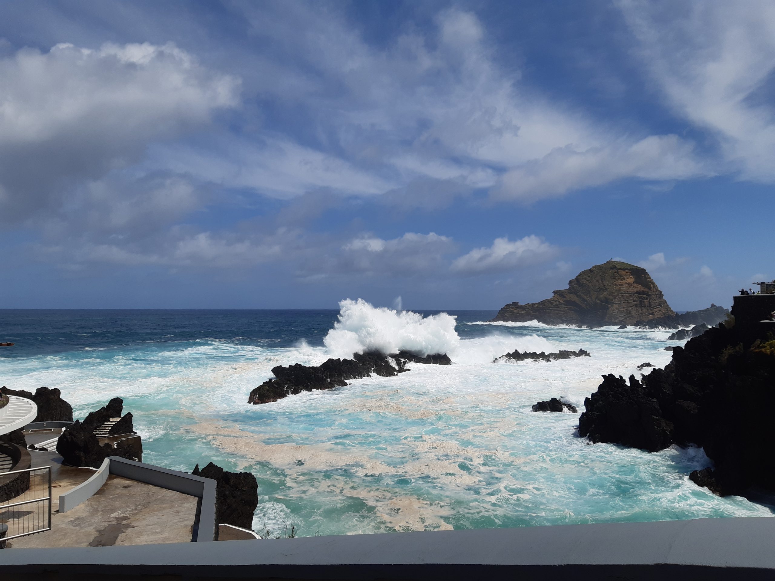 und etwas Freizeit geht es weiter zum Brautschleifer Wasserfall. Dieser trägt seinen Namen, da das Wasser in feinen Tropfen von der Klippe fällt, eben wie ein Brautschleicher. Nach einem kurzen Stopp und Besichtigung fahren wir weiter nach Porto Moniz. Der Nordwestlichste Ort der Insel ist bekannt für seine