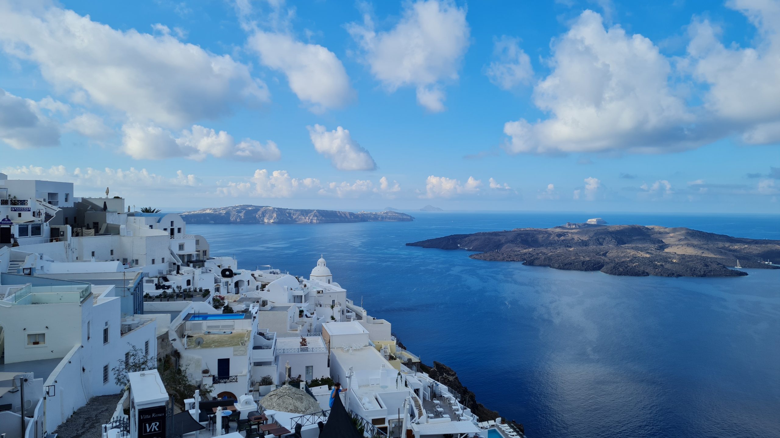 geführten Rundgang den schönen Ort. Oia erstreckt sich in ca. 100 Meter Höhen über fast 2 Kilometer entlang des nördlichen Caldera-Randes der Kykladeninsel