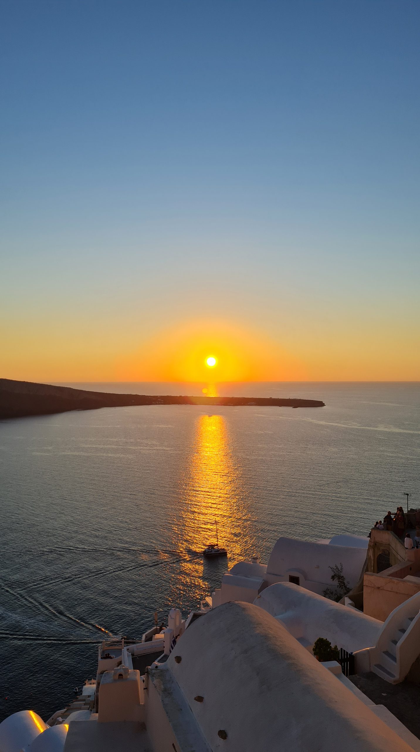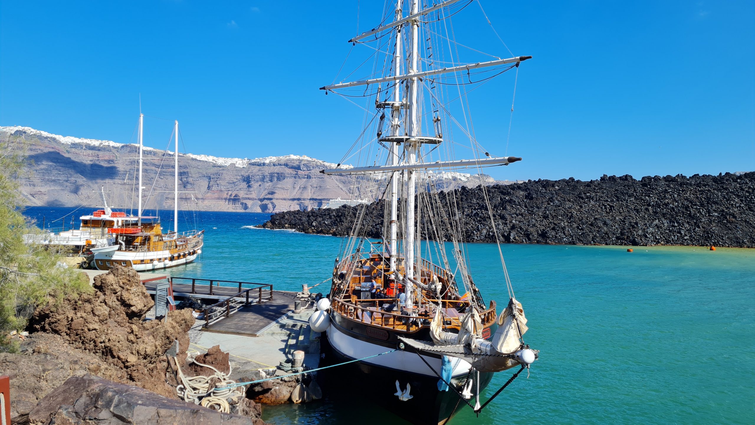 Frühstücksbuffet im Hotel. Genießen Sie am Vormittag die schöne Lage Ihres Hotels und den langen feinen Sandstrand. Nach Ihrem Mittagessen im Hotel beginnt, falls gebucht, unser heutiger Ausflug. Auf der Fahrt zum Hafen von Athinos bestaunen wir die bis zu 300 m hohen Steilhänge der Caldera, sie sind ein natürliches Museum sämtlicher Lavaschichten, die der Vulkan ausgeworfen hat. Mit dem großen Segelboot „Afrodite“ (ca. 150 Personen) fahren wir zur großen Kameni Insel und laufen zwischen tiefschwarzen Lavabrocken aufwärts zum Ag. Georgios Krater. Diese bizarre, fast unheimliche Landschaft hinterlässt bleibende Eindrücke von der Urgewalt der Natur. Wer mag, kann bei der kleinen Kameni Insel in den warmen Quellen schwimmen. Weiter geht es zur Schwesterninsel von Santorin – Therasia. Dort liegt der malerische Hauptort Manolas. Hektik ist hier ein Fremdwort. An Bord Ihres Segelbootes wird Ihnen ein kleines, einfaches aber sehr schmackhaftes Abendessen serviert, genießen Sie das endlose Blau der berühmten Caldera von Santorin und den berühmten Sonnenuntergang mit Blick auf Oia und Thira. Übernachtung im Hotel.