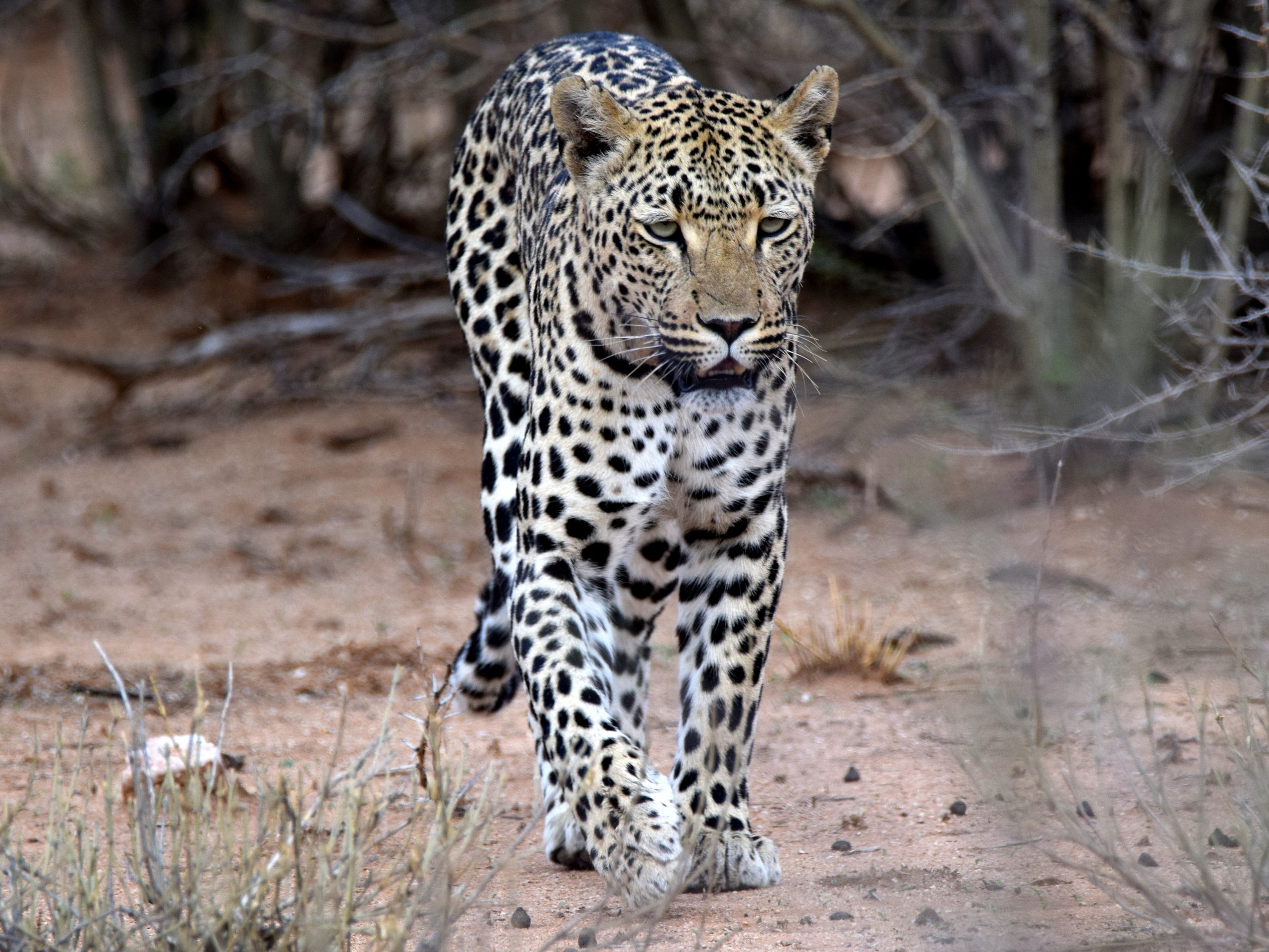 Ganztägige Wildbeobachtungsfahrt mit dem Reisebus auf der Westseite des Etosha Parkes. Sie fahren entlang der Etoshapfanne durch die unterschiedlichsten Vegetationszonen zu natürlichen und künstlich angelegten Wasserstelle – immer Ausschau haltend nach Giraffen, Elefanten, Löwen, Nashörnern oder gar Leoparden, während Herden von Antilopen und Zebras Ihren Weg kreuzen. In der Regenzeit fließt von Norden nach Süden Wasser in die vegetationslose Pfanne, wo es verdunstet. Die zurückbleibenden Mineralstoffe und Salze bilden teilweise eine regelrechte Kruste. An der Südseite des Sees befinden sich ständige Wasserlöcher, weil sich im Kalkstein gespeichertes Regenwasser auf dem undurchlässigen Tonboden sammelt und durch das natürliche Pfannengefälle nach Süden sickert. Unterwegs wird in