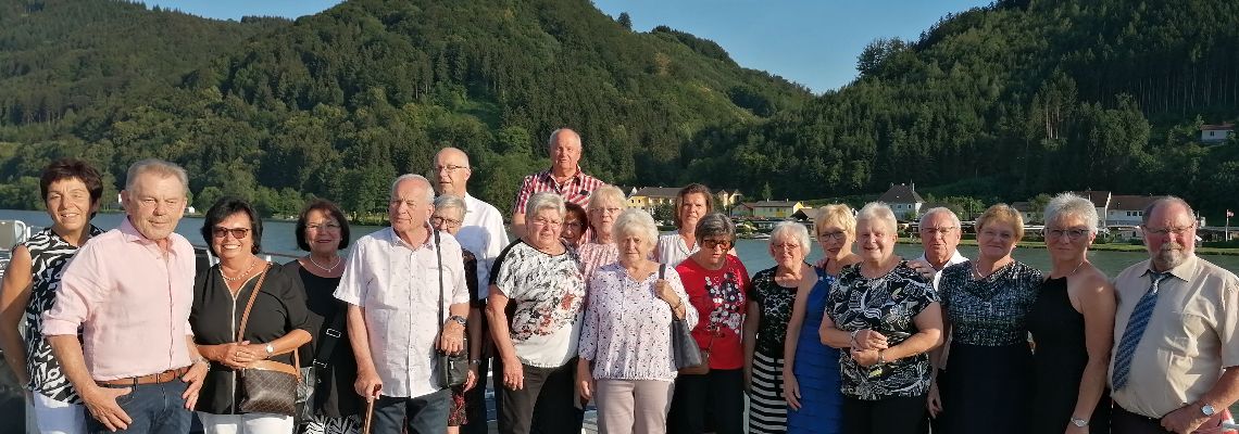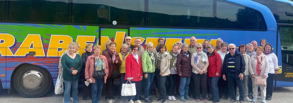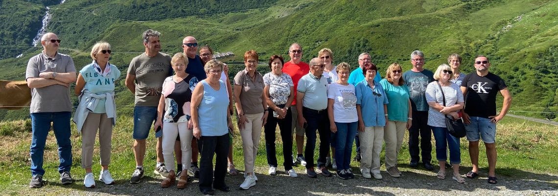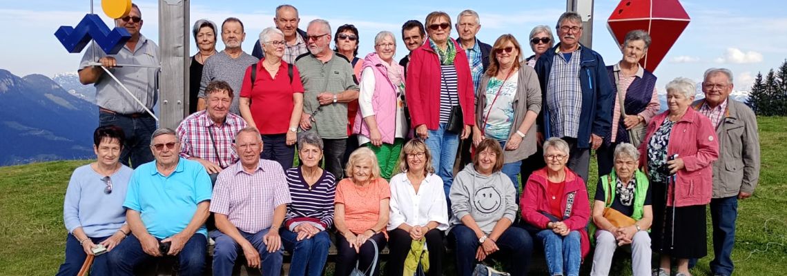Schon mit Sonnenschein fuhr eine fröhliche Gruppe mit einem Bus der Firma Pomper und Fahrer Angelo in Richtung Österreich. Zu unserem „Glück“ wurde ein Stau am Inntaldreieck gemeldet und so fuhr Angelo über die Landstraße vorbei am Tegernsee und Alpachsee.